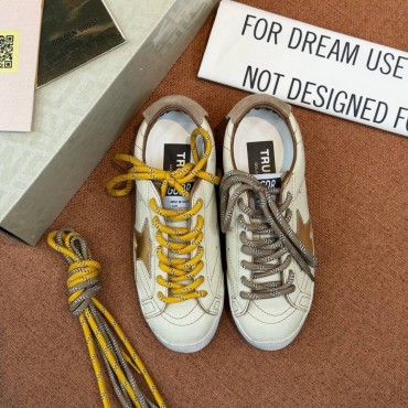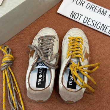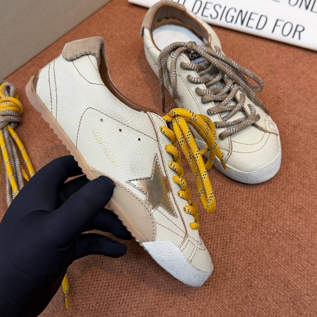 Женские кожаные кеды Golden Goose белые с разными шнурками 2026