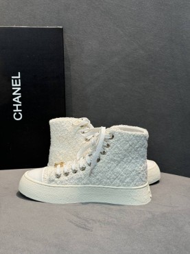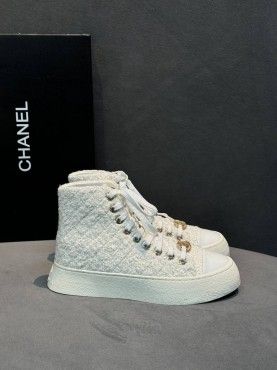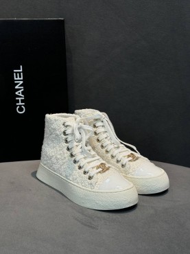 Женские текстильные кеды Chanel белые с лакированным носом 2025