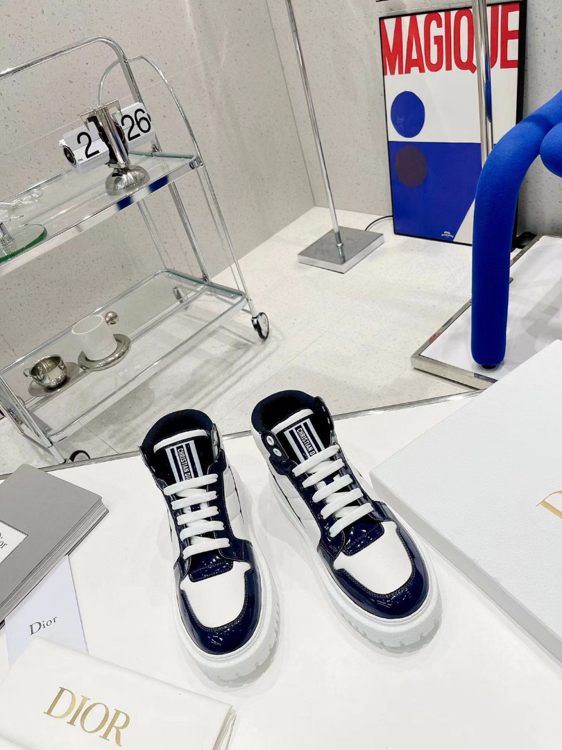 Женские высокие кеды Christian Dior белые с синим лакированные