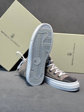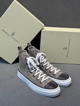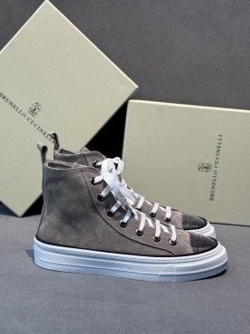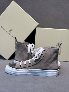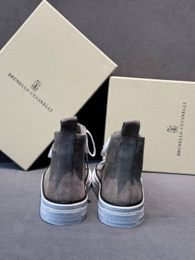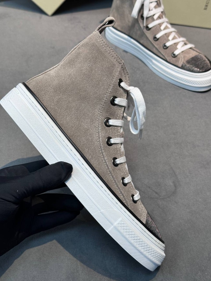Женские высокие замшевые кеды Brunello Cucinelli серые с блестящим носком 2025