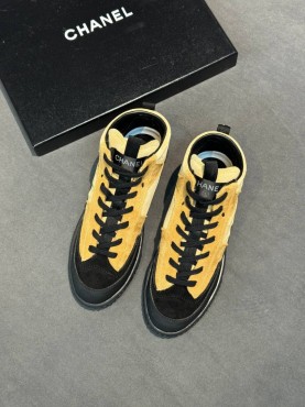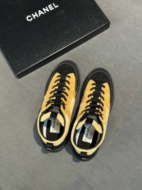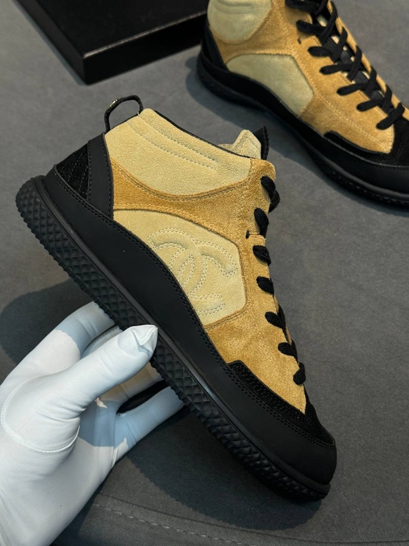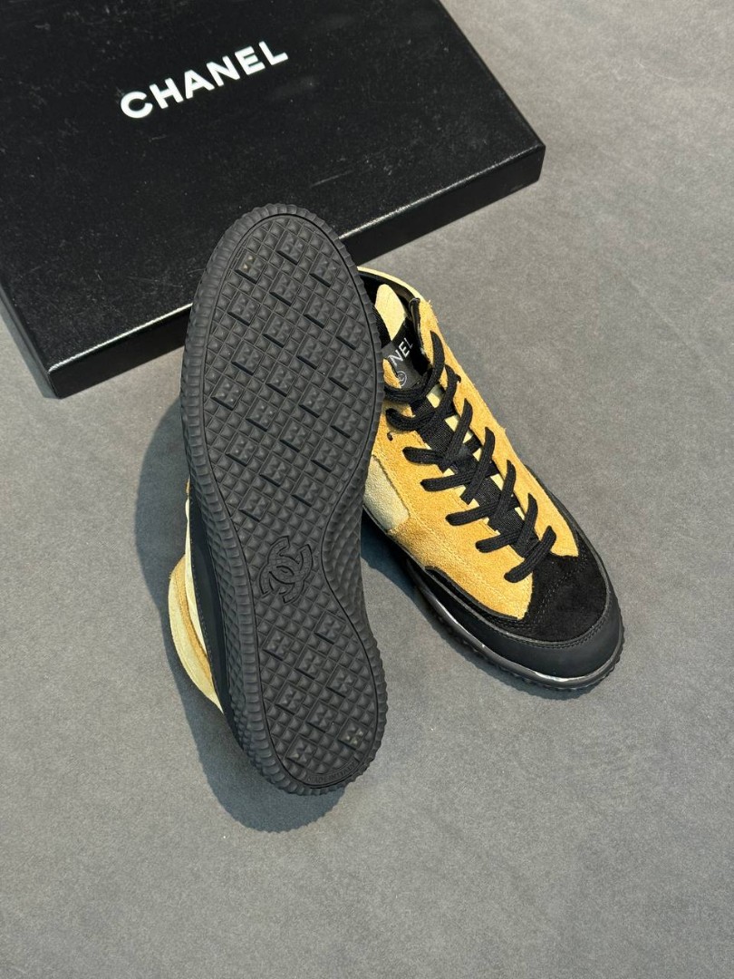 Женские замшевые кеды Chanel бежевые с черным 2026