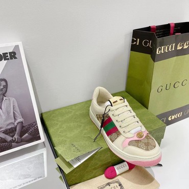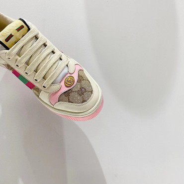 Женские бежевые кроссовки Gucci с розовой подошвой