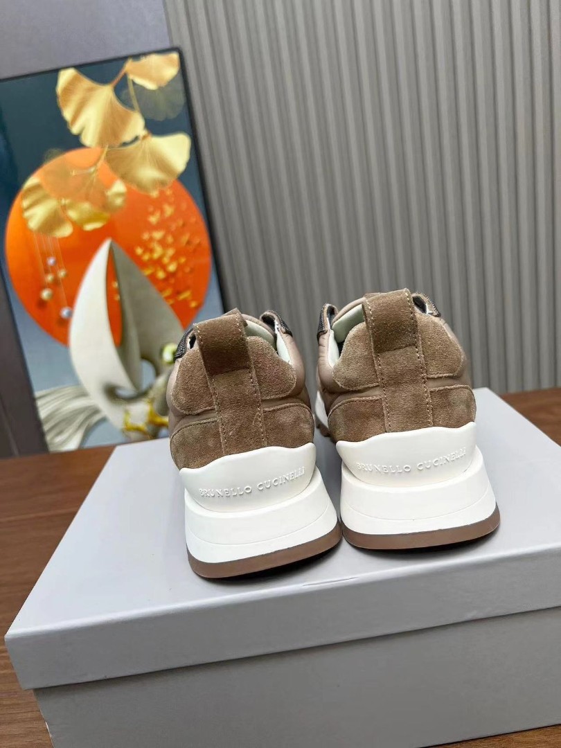 Женские комбинированные кроссовки Brunello Cucinelli 2024 коричневые с бусинами