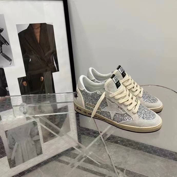 Женские комбинированные кроссовки Golden Goose 2023-2024 серые с блестками