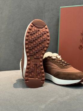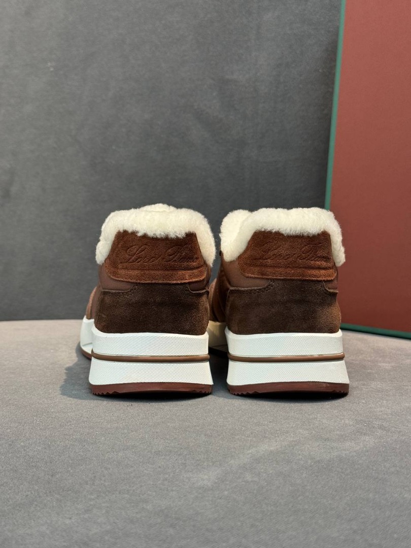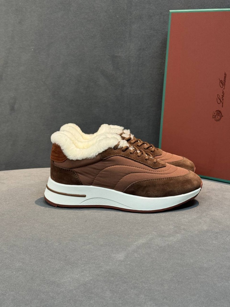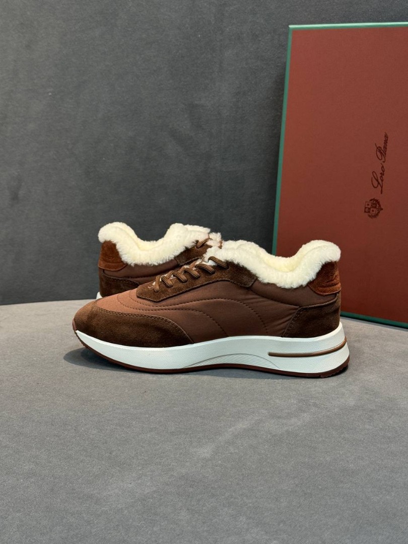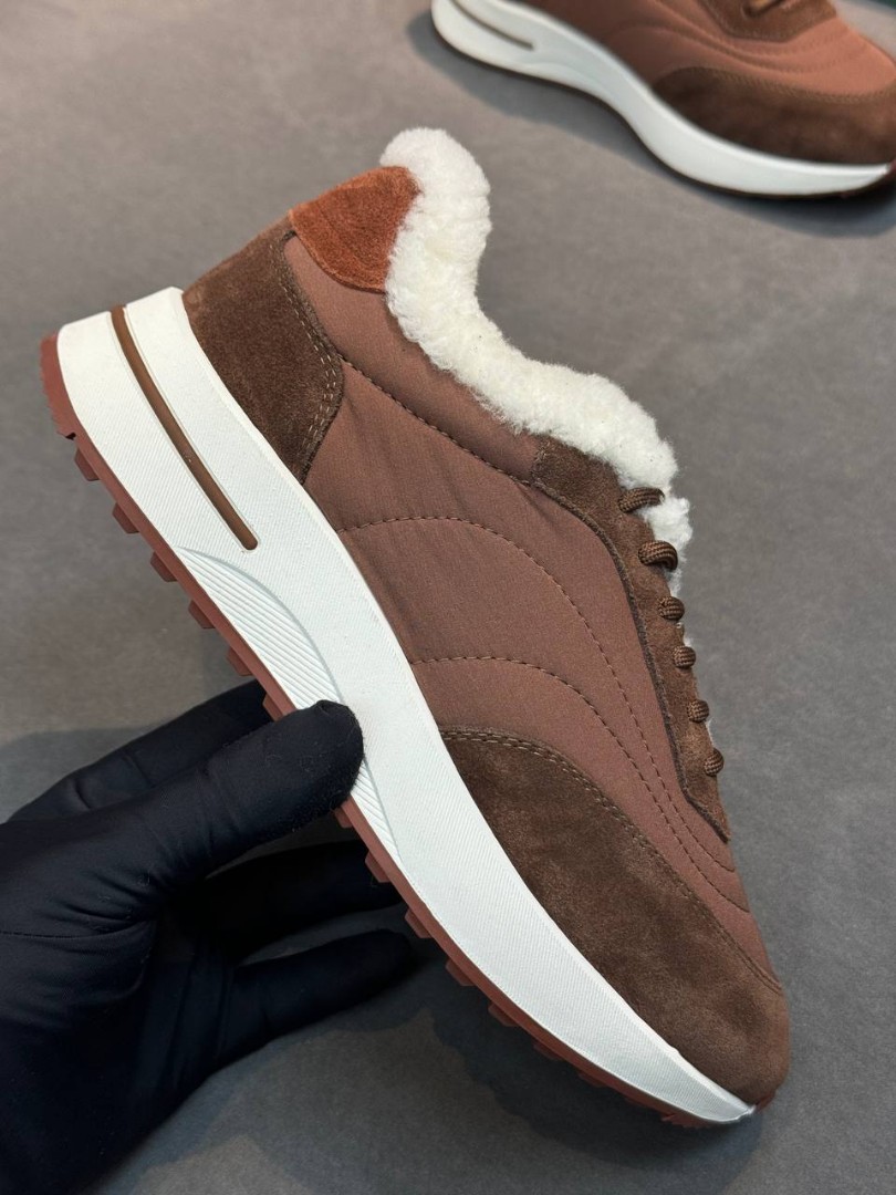 Женские комбинированные кроссовки Loro Piana коричневые с мехом 2026