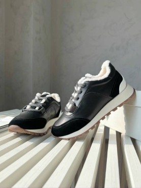 Женские комбинированные кроссовки на меху Brunello Cucinelli 2023 черные