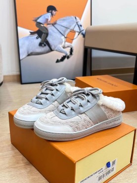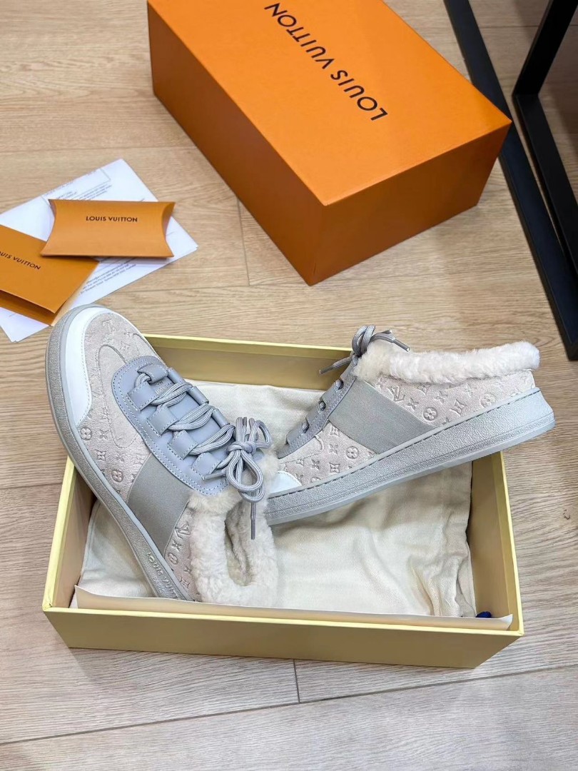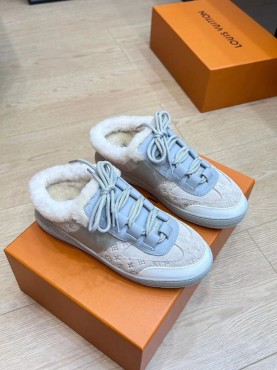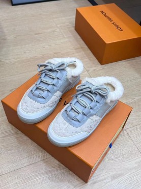 Женские комбинированные кроссовки на меху Louis Vuitton 2023 бежевые