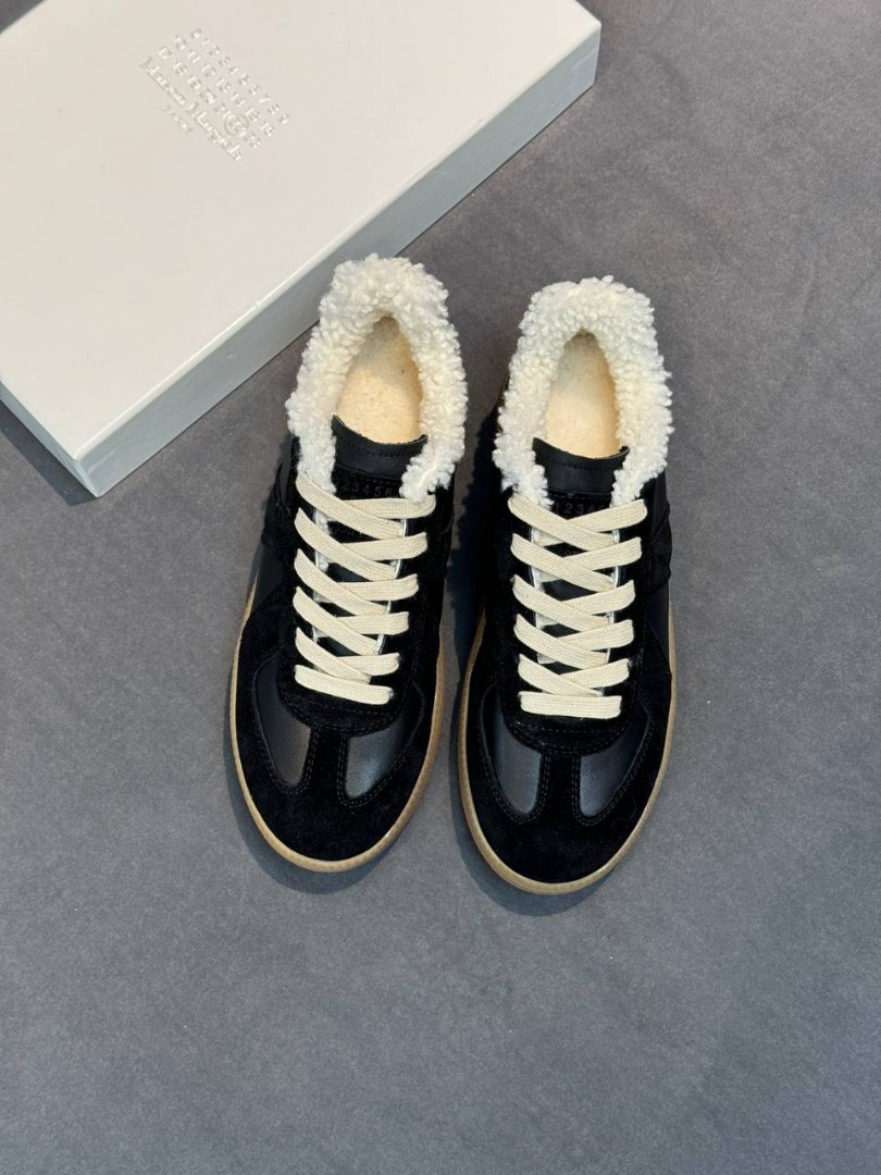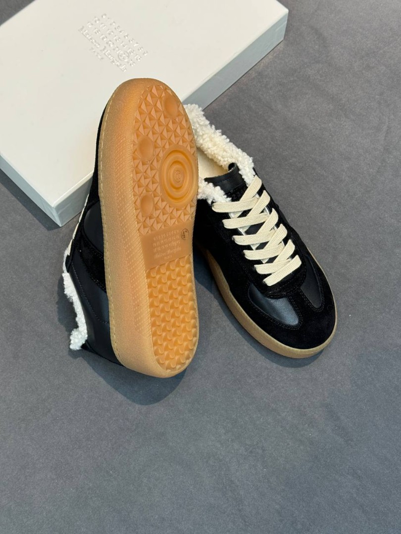 Женские комбинированные кроссовки на платформе Maison Margiela Replica черные с мехом 2026