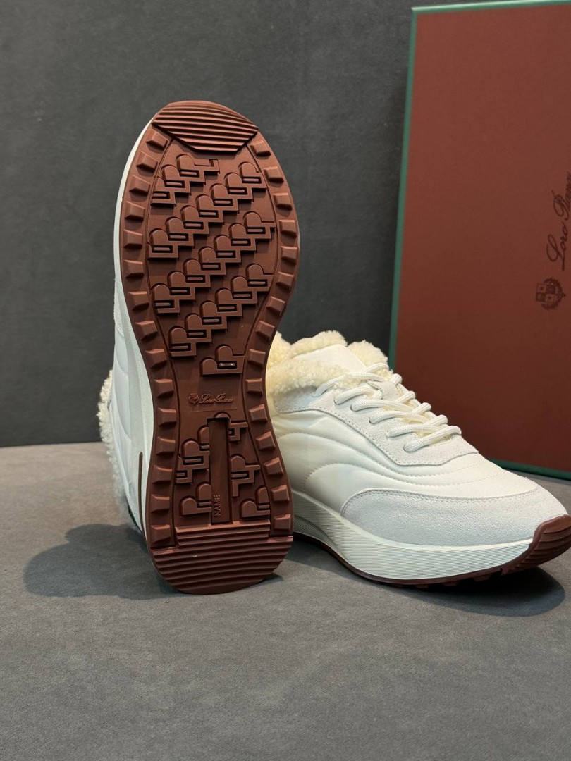 Женские комбинированные кроссовки The Row белые с мехом 2026