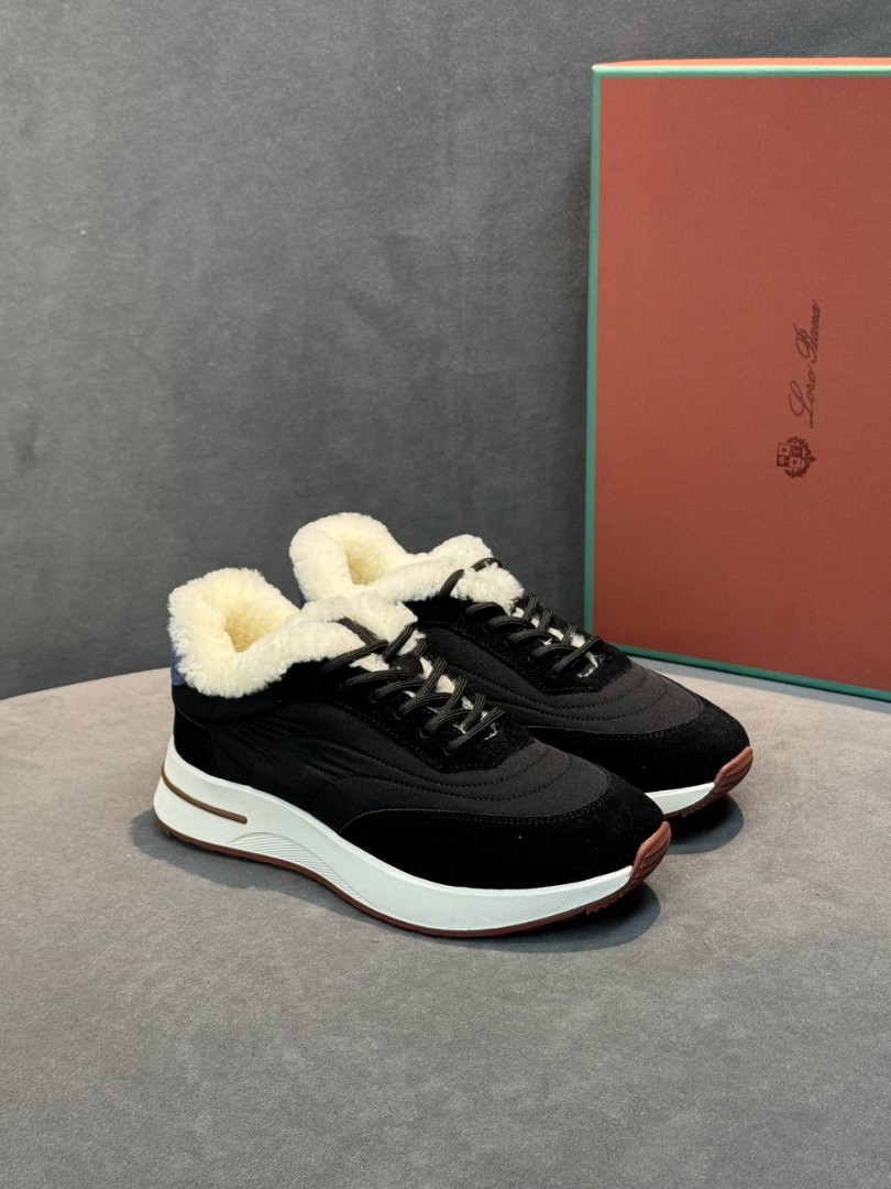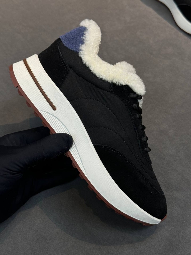 Женские комбинированные кроссовки The Row черные с мехом 2026