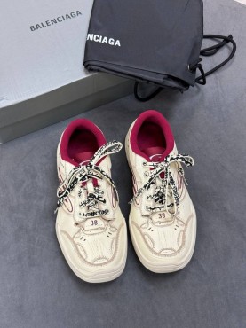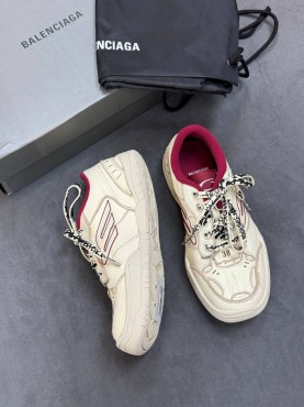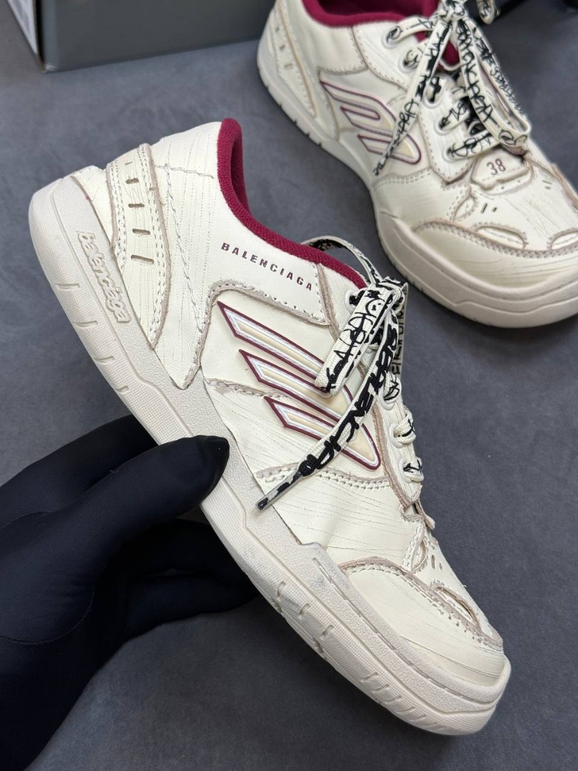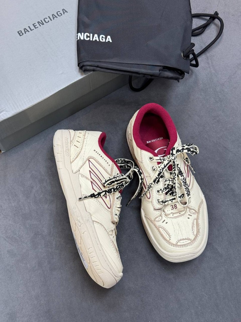 Женские кожаные кроссовки Balenciaga Hamptons Medium Worn-out белые с фиолетовым 2025