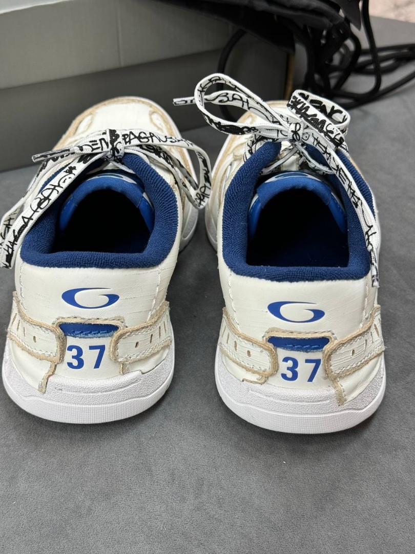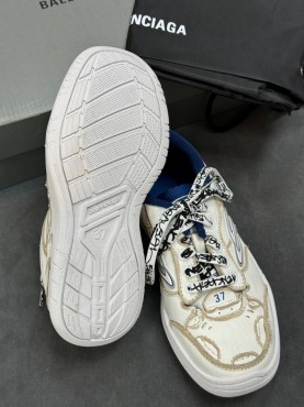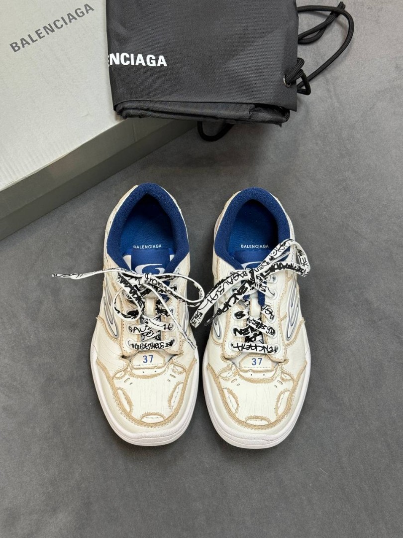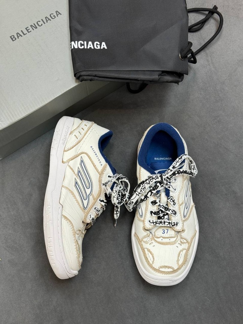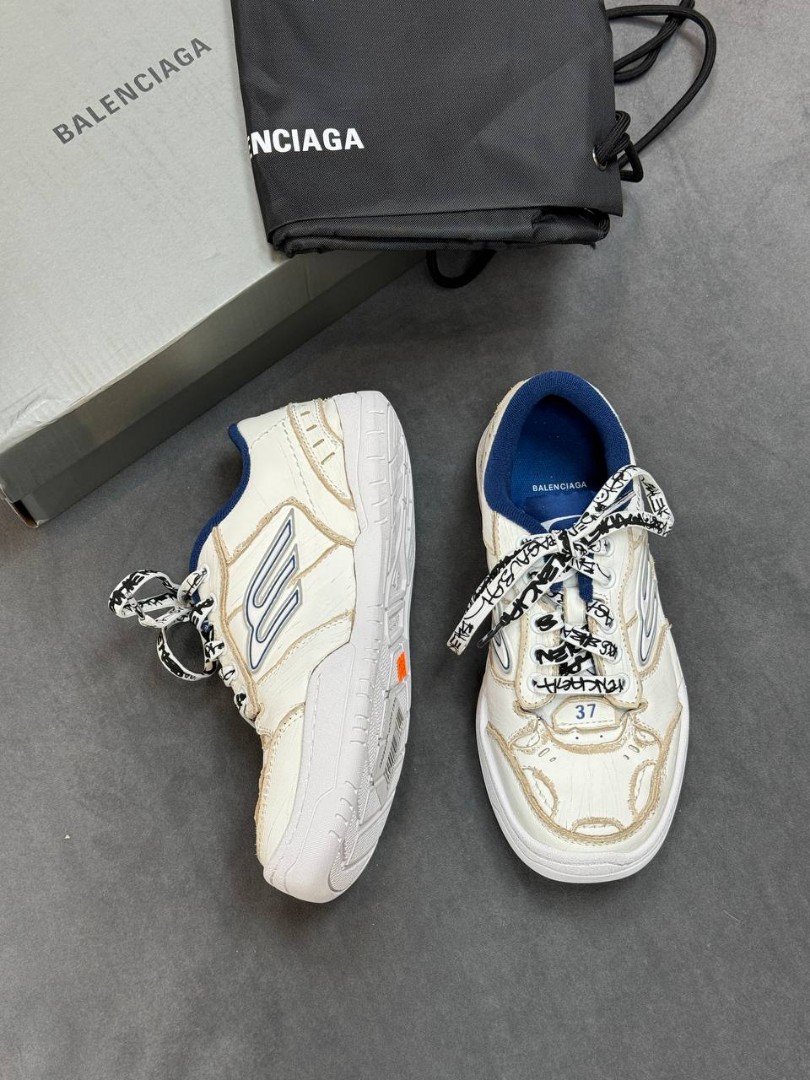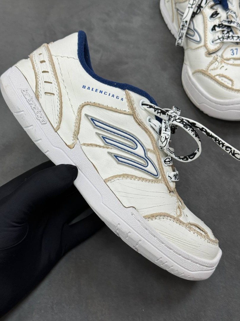 Женские кожаные кроссовки Balenciaga Hamptons Medium Worn-out белые с синим 2025