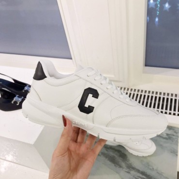 Женские кожаные кроссовки Celine 2024 белые с черной буквой