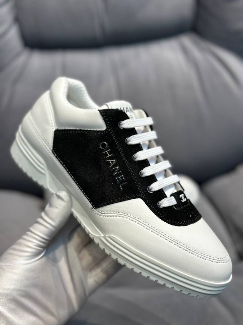 Женские кожаные кроссовки Chanel 2024 белые с черными замшевыми вставками