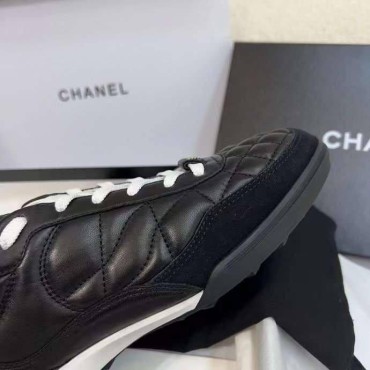 Женские кожаные кроссовки Chanel 2024 черные с прострочкой