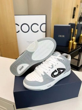 Женские кожаные кроссовки Christian Dior 2024 белые с серым