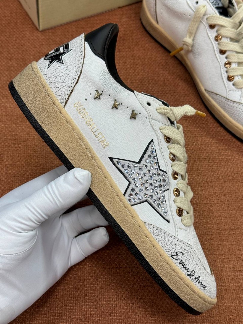Женские кожаные кроссовки Golden Goose Ball Star белые со стразами 2025