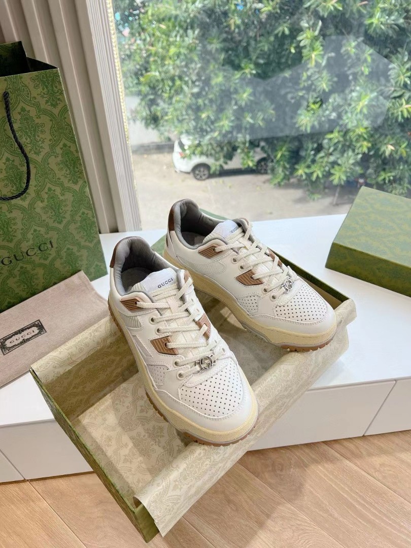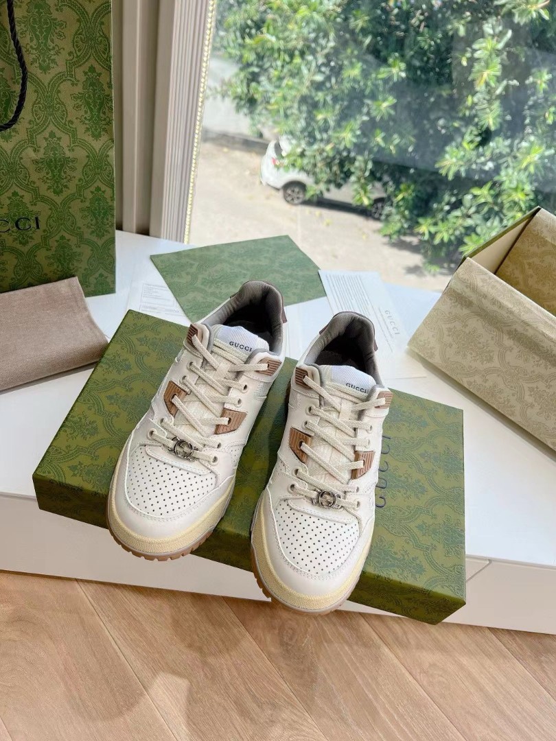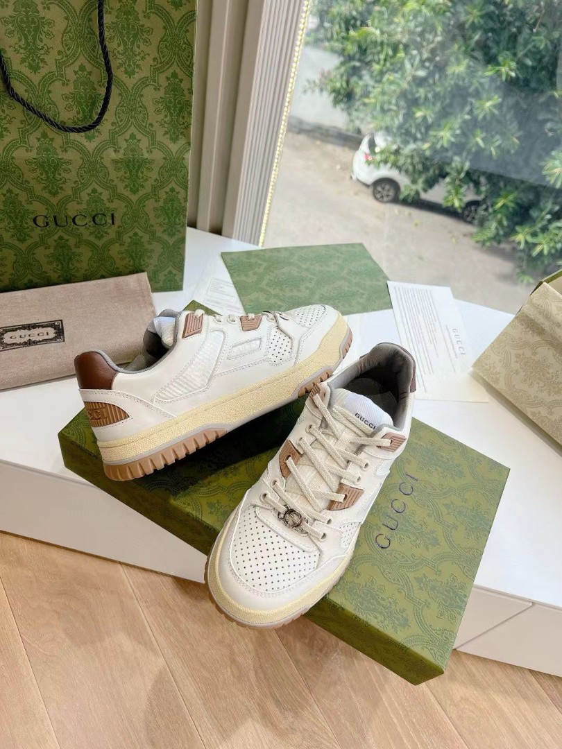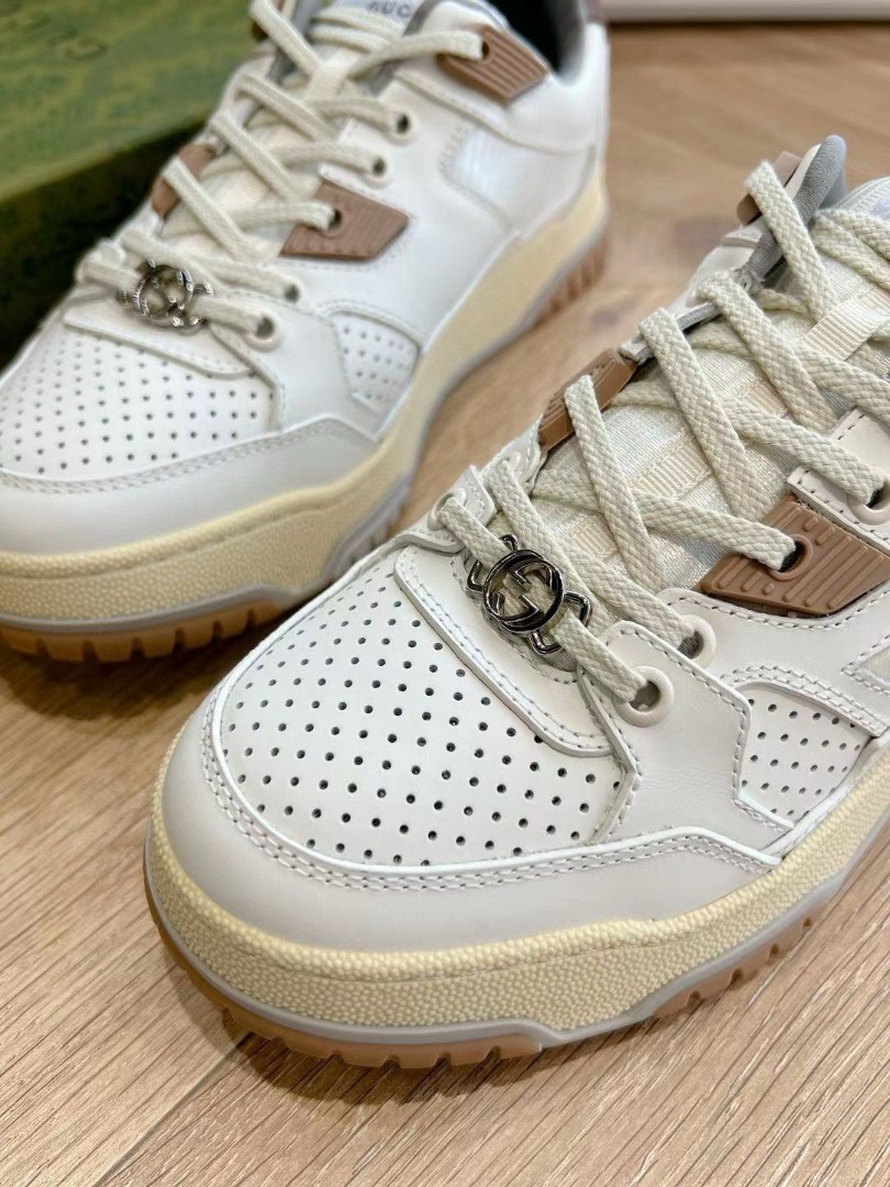 Женские кожаные кроссовки Gucci 2024 со вставками из каучука белые с коричневым