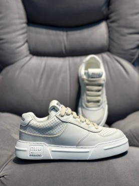 Женские кожаные кроссовки Miu Miu белые с эффектом потертости 2024