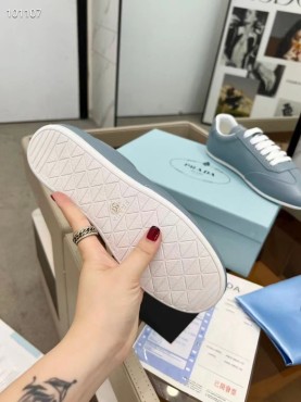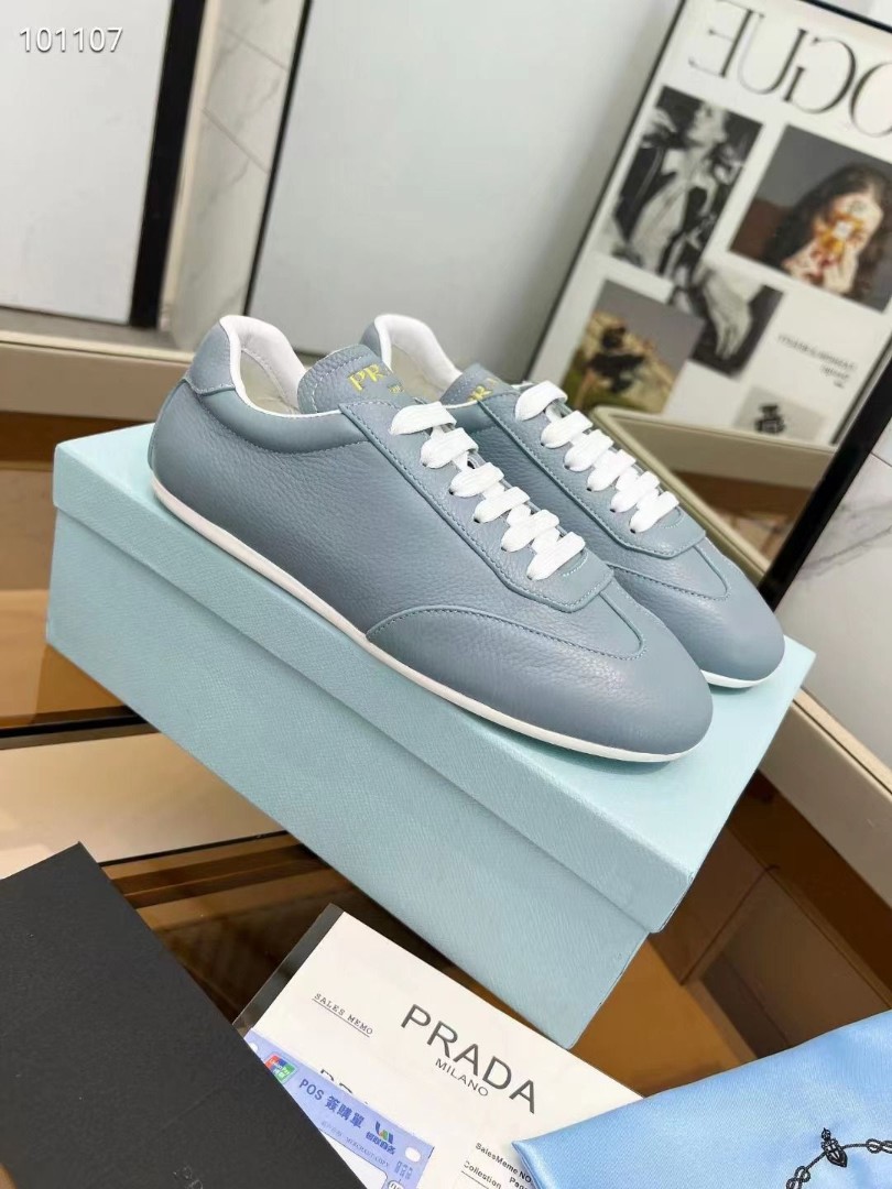Женские кожаные кроссовки Prada голубые 2024
