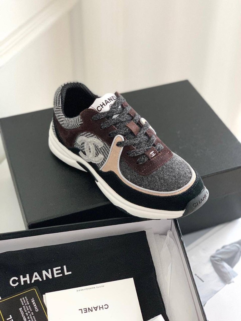 Женские текстильные кроссовки Chanel 2023-2024 серые с коричневым и черным