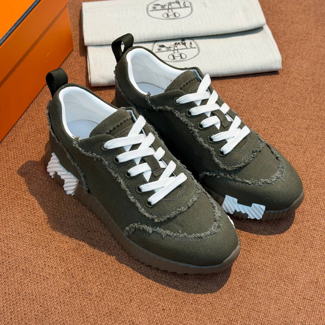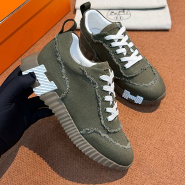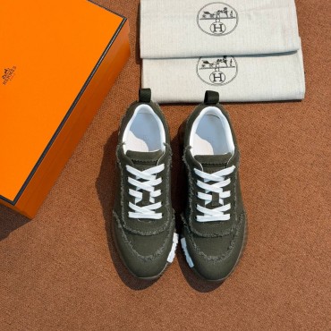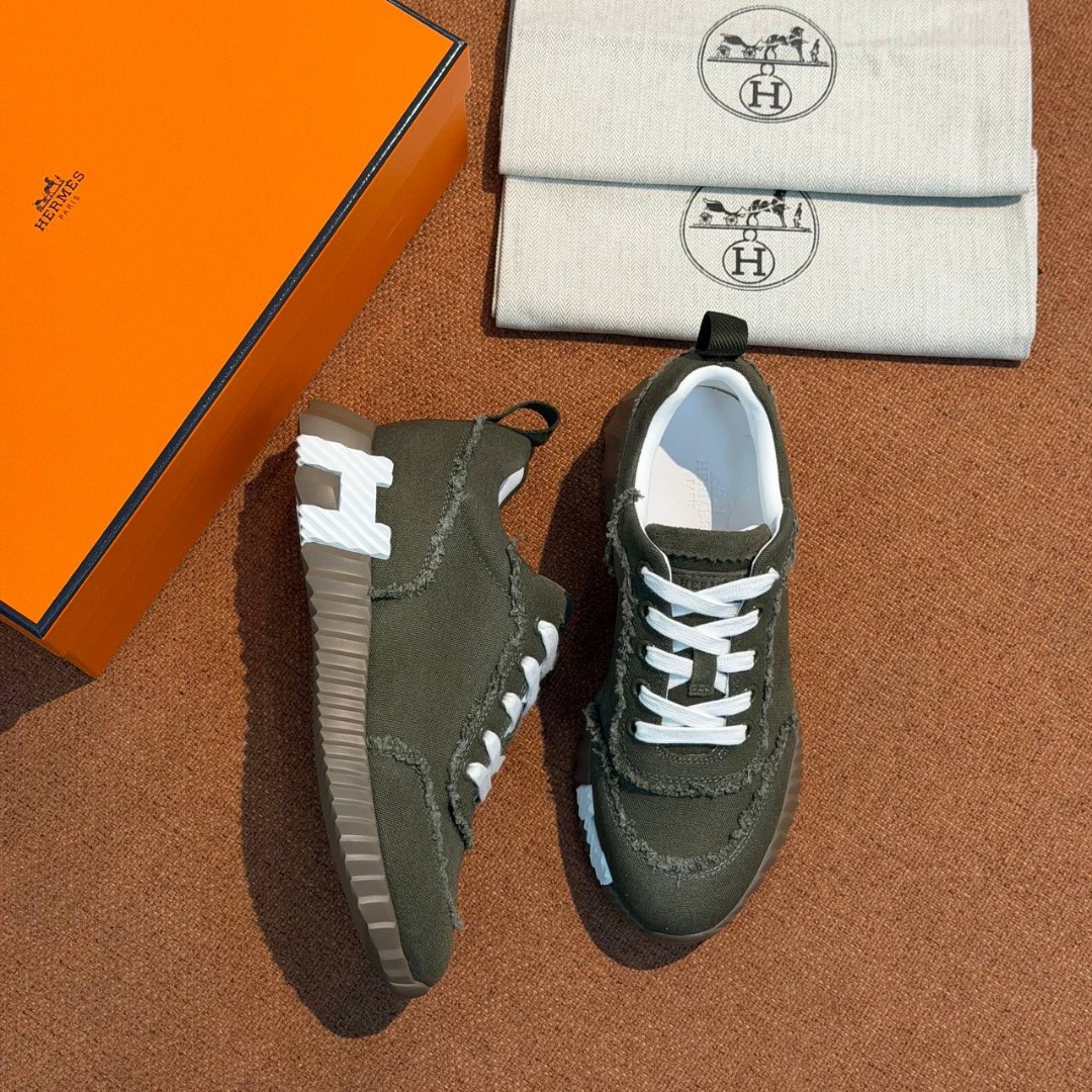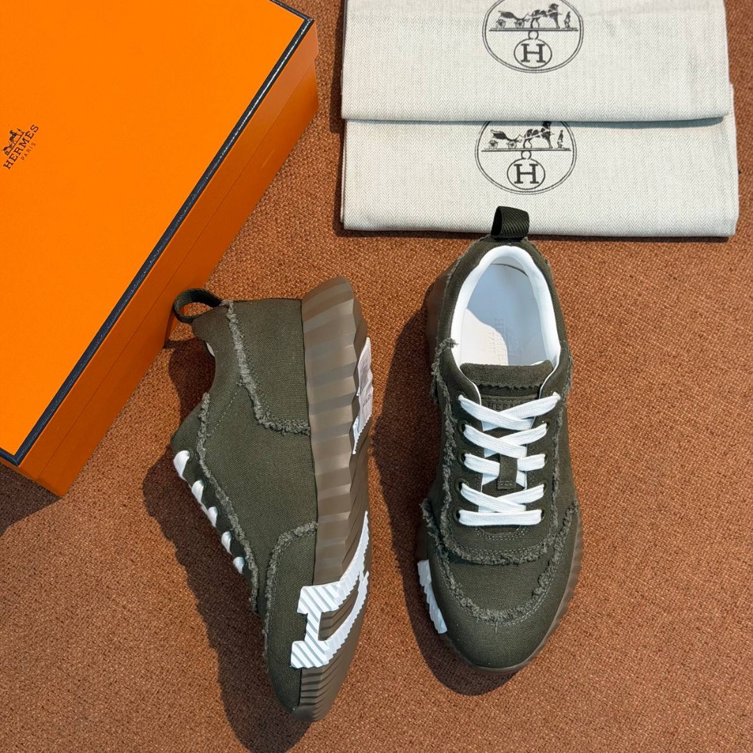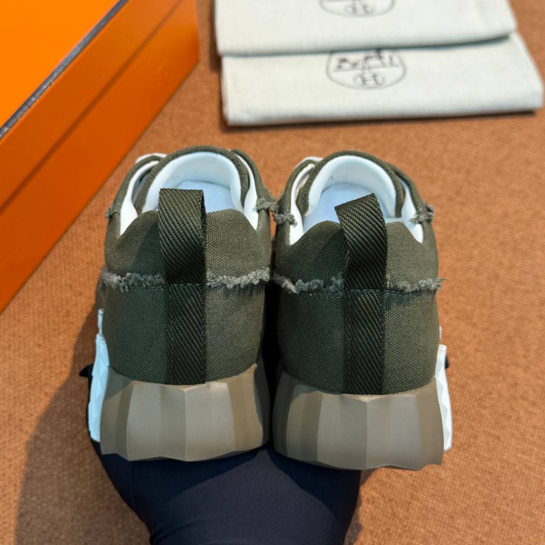 Женские текстильные кроссовки Hermes зеленые с бахромой 2026