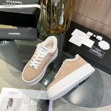 Женские замшевые кроссовки Chanel 2023 бежевые с мехом