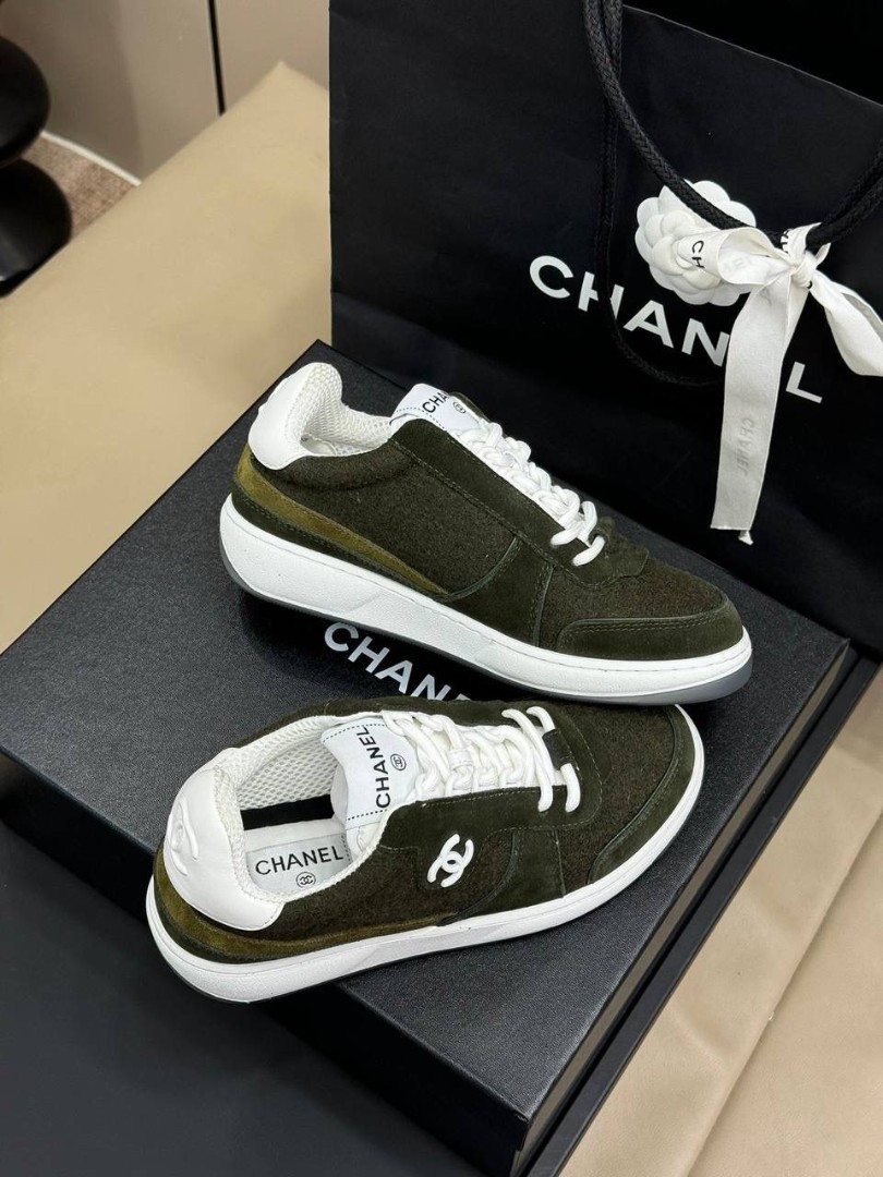Женские замшевые кроссовки Chanel темно-зеленые 2024