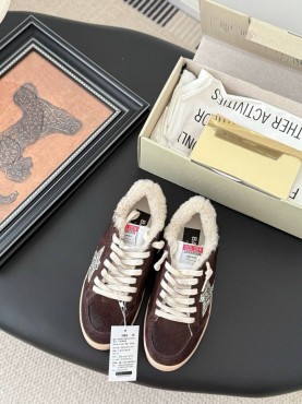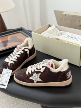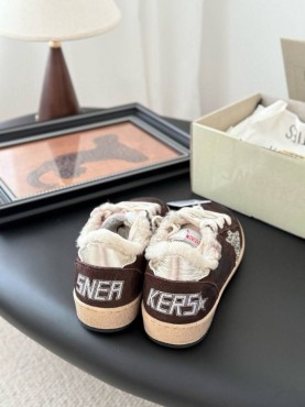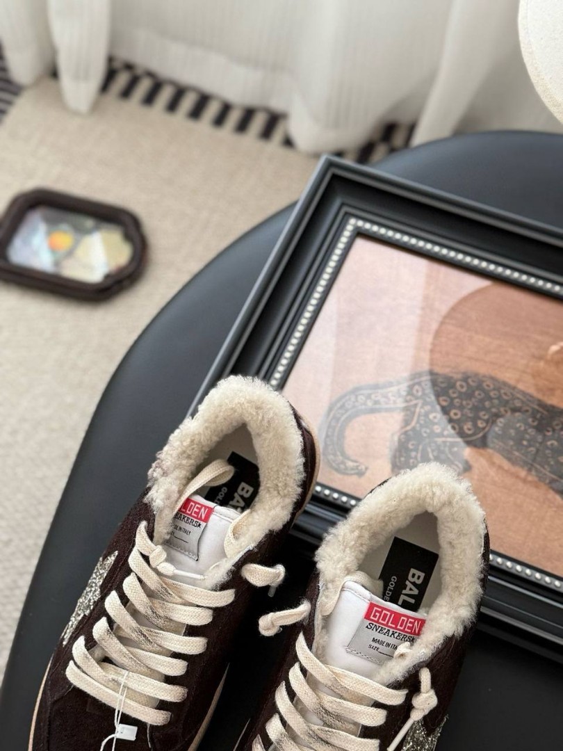 Женские замшевые кроссовки Golden Goose коричневые с мехом 2025