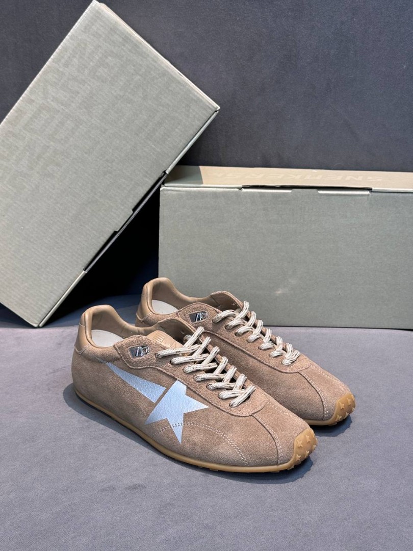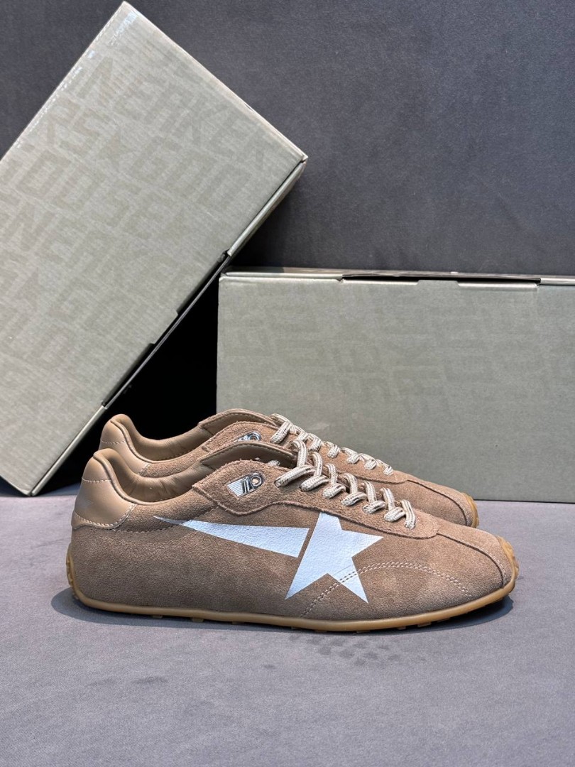 Женские замшевые кроссовки Golden Goose коричневые с серебряной звездой 2025