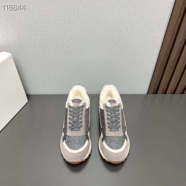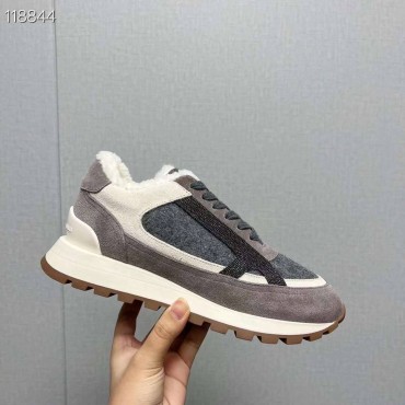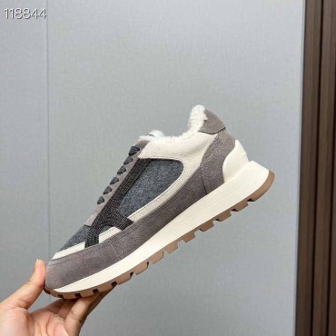 Женские замшевые кроссовки на меху Brunello Cucinelli серые с текстильными вставками 2024