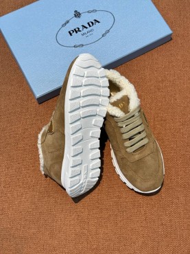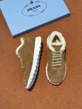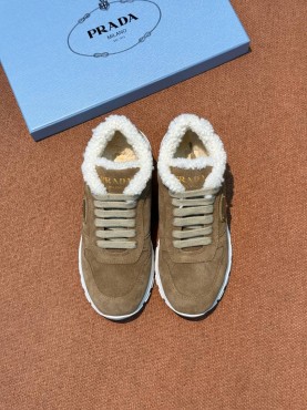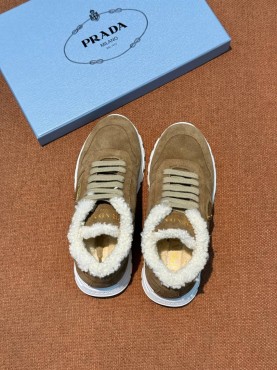 Женские замшевые кроссовки Prada коричневые с мехом 2026