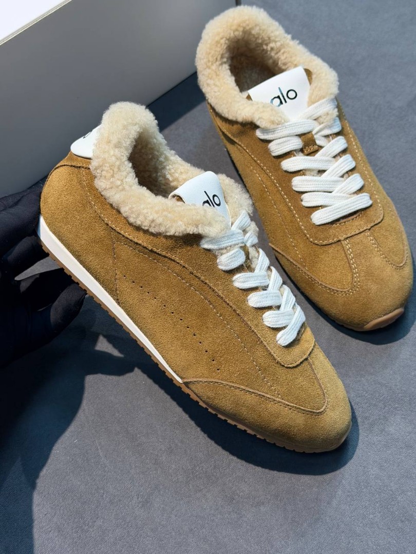 Женские замшевые кроссовки с мехом Alo Yoga коричневые 2026