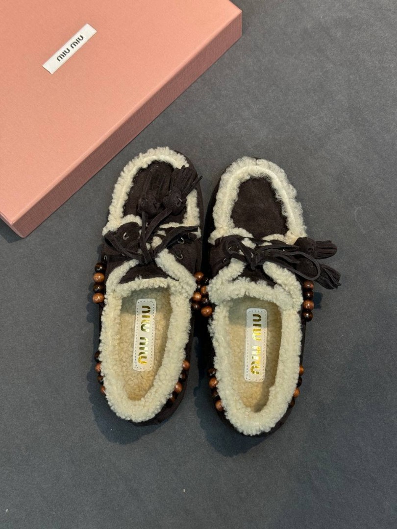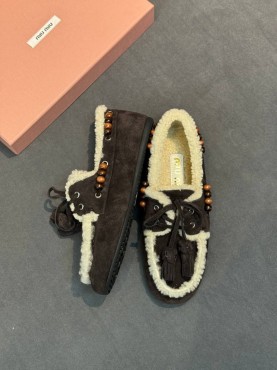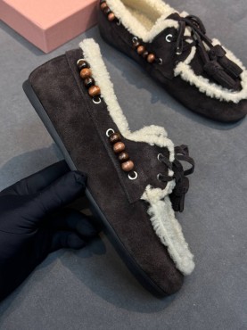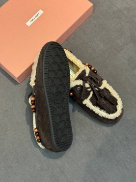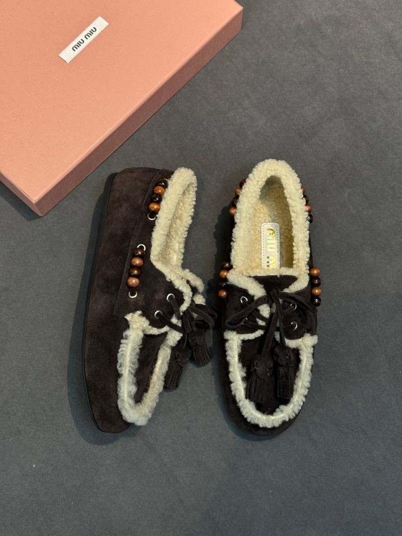 Замшевые лоферы Miu Miu темно-коричневые с мехом 2026