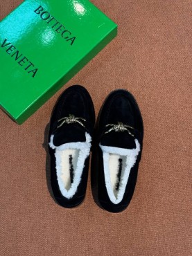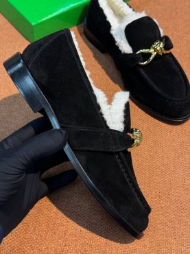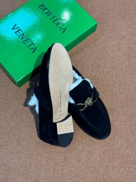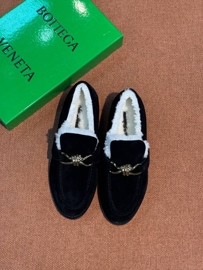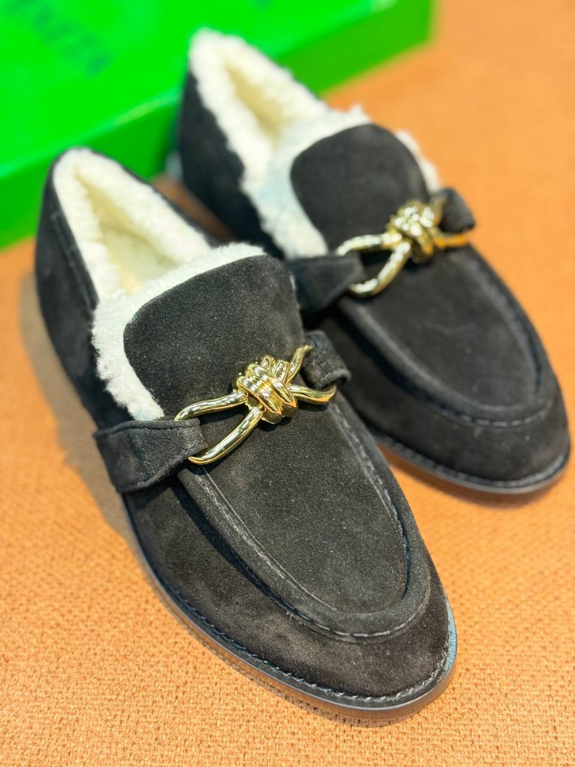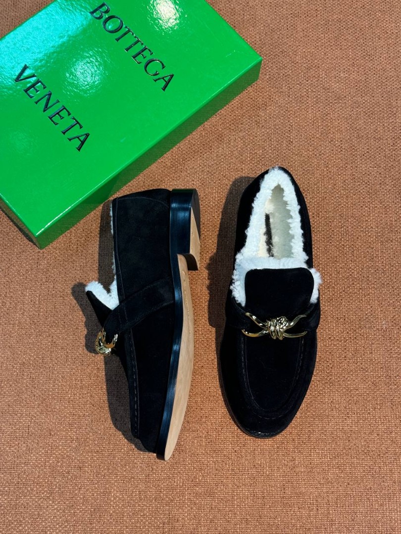 Замшевые лоферы с пряжкой Bottega Veneta черные с мехом 2026