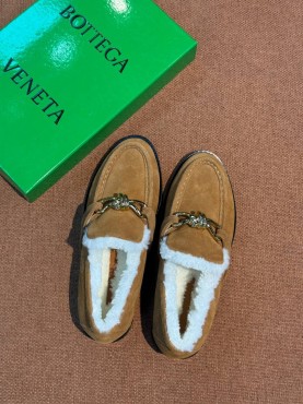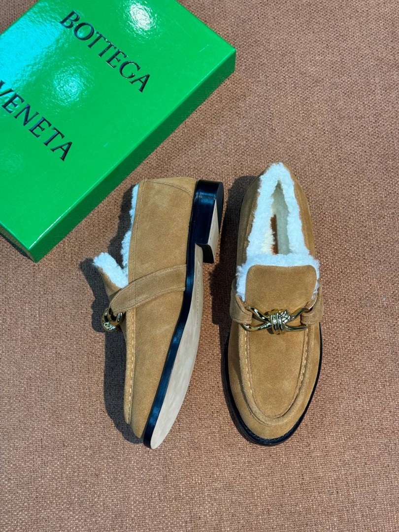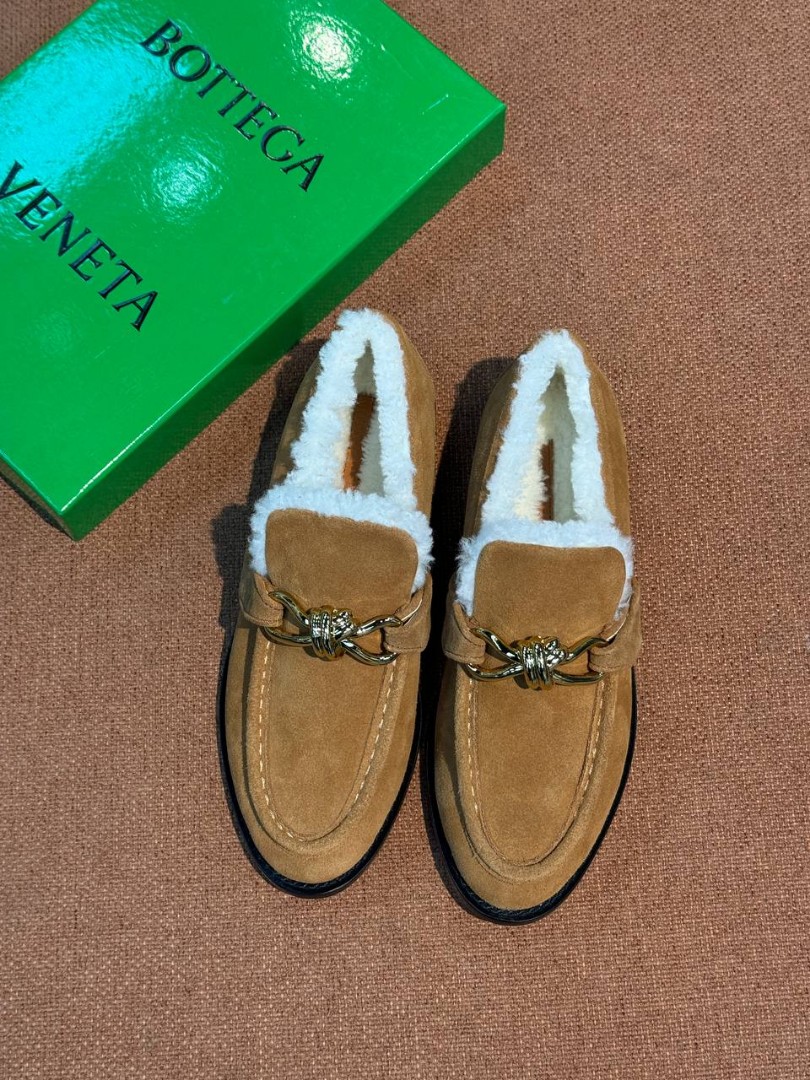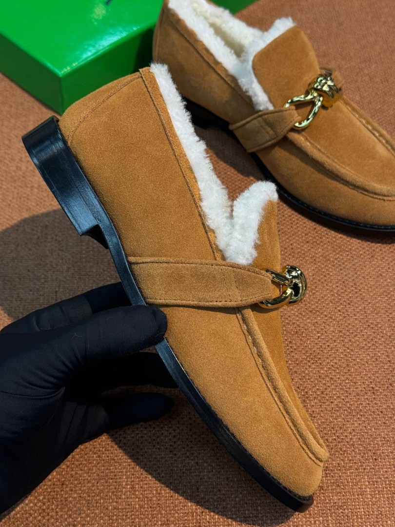 Замшевые лоферы с пряжкой Bottega Veneta коричневые с мехом 2026