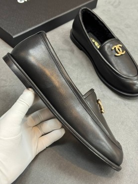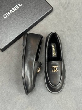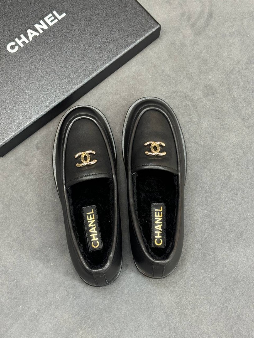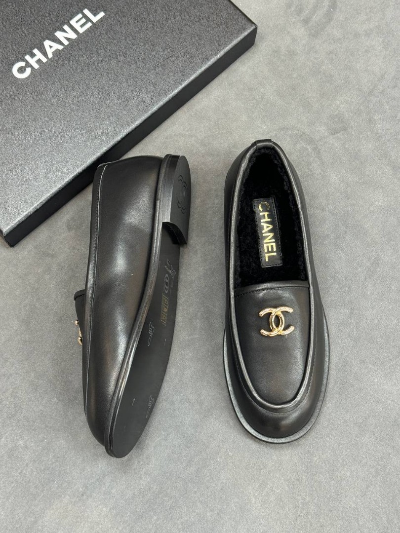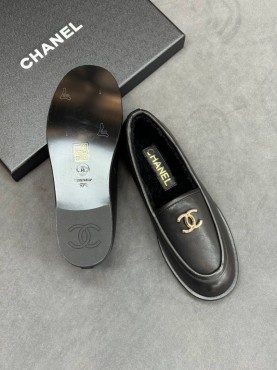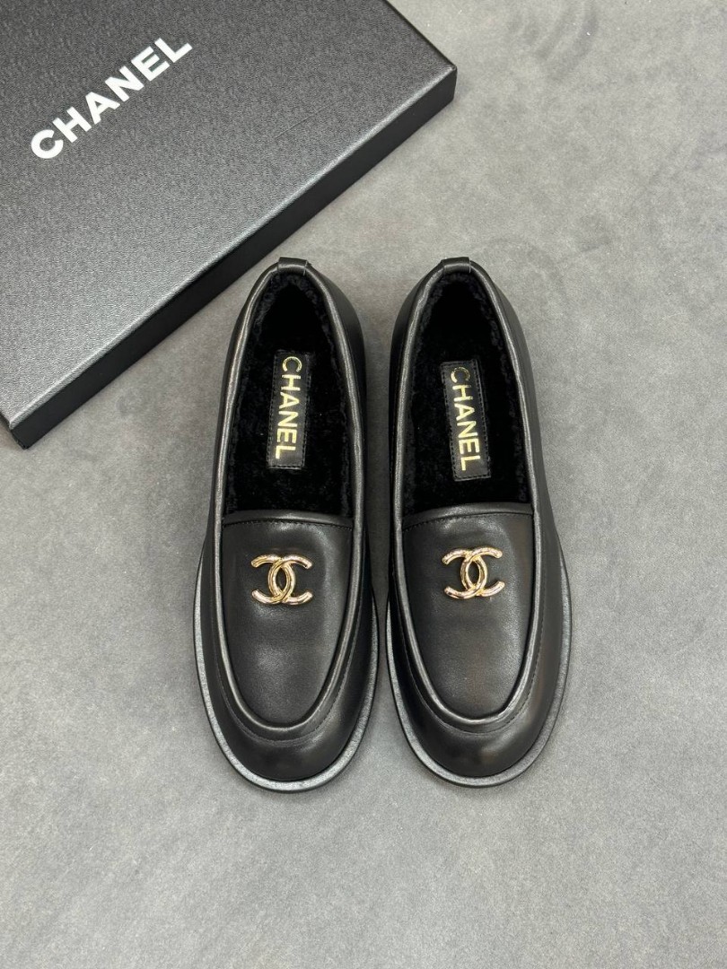 Женские кожаные лоферы Chanel черные с мехом 2025