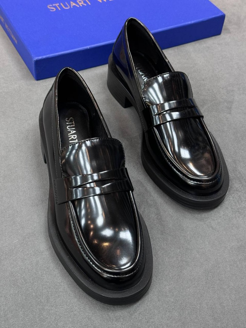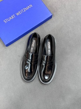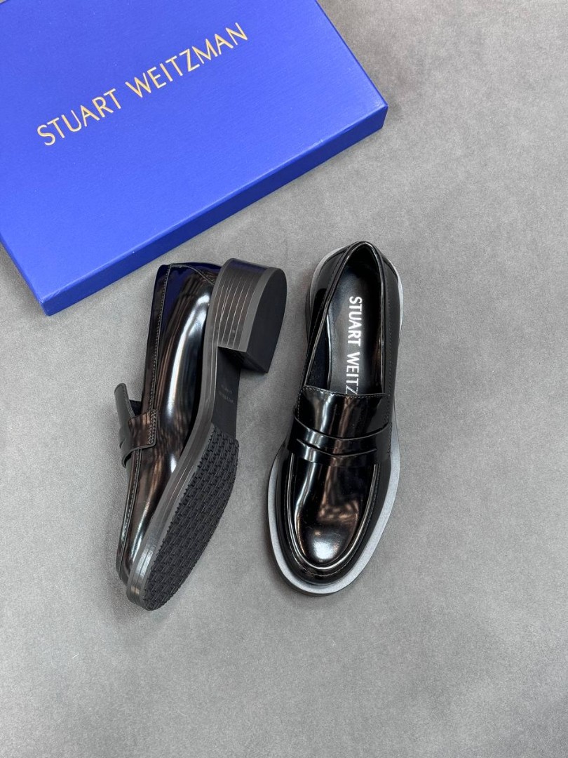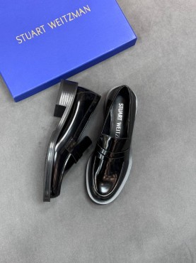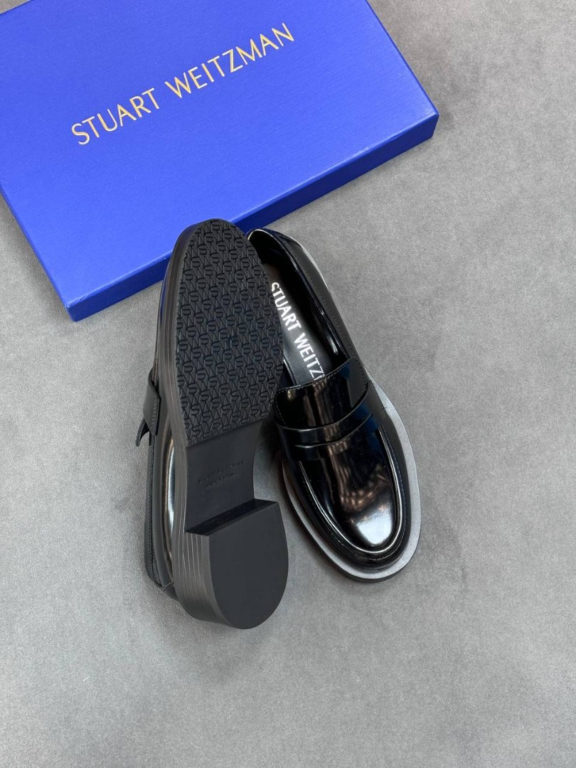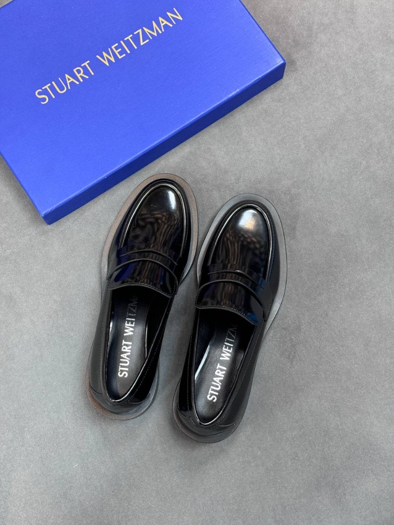 Женские кожаные лоферы Stuart Weitzman черные лакированные 2025