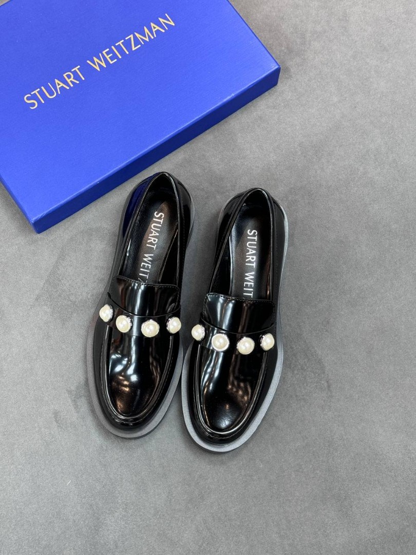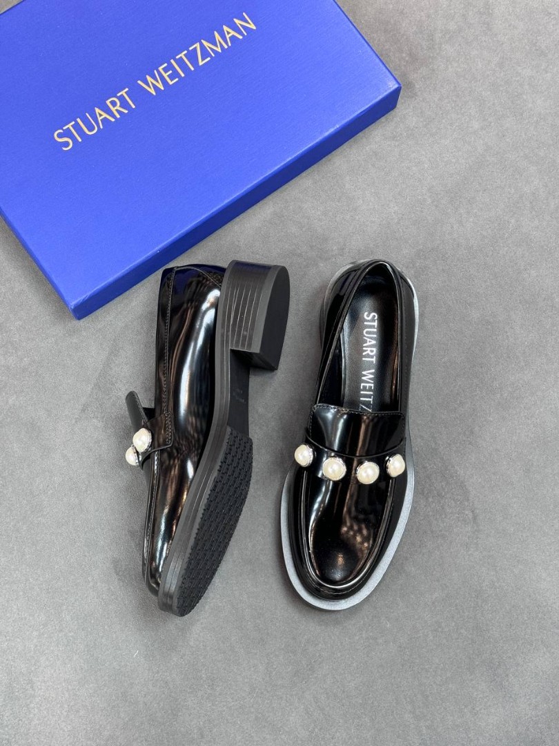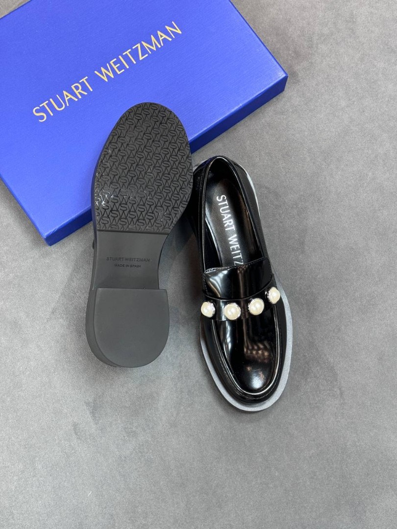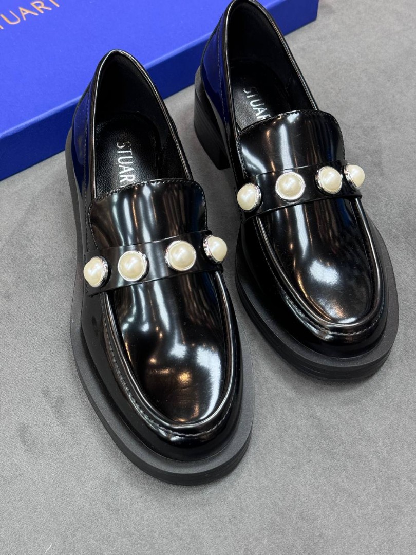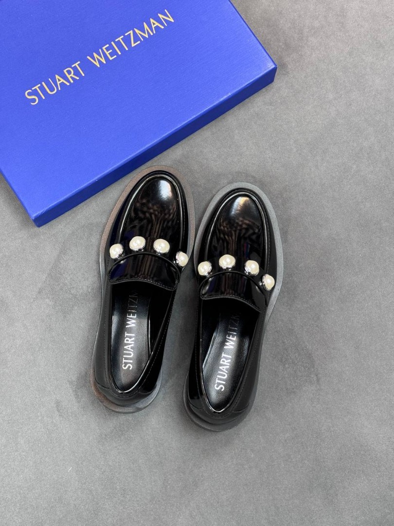 Женские кожаные лоферы Stuart Weitzman черные лакированные с жемчужинами 2025