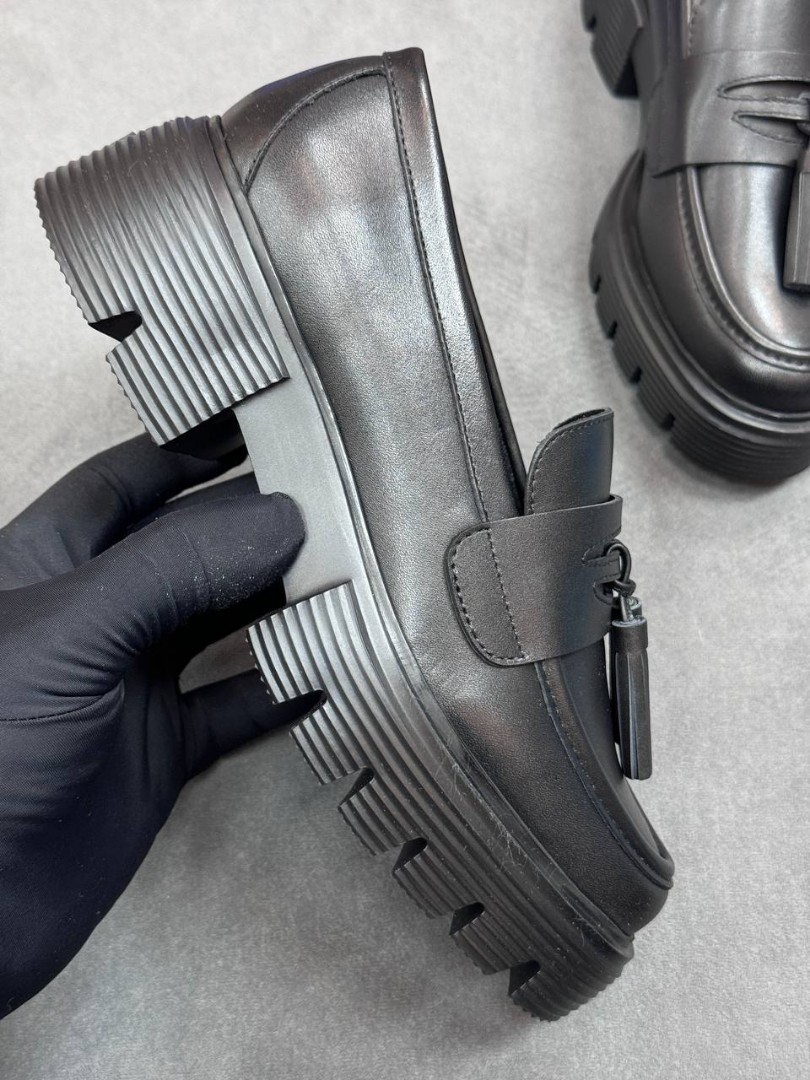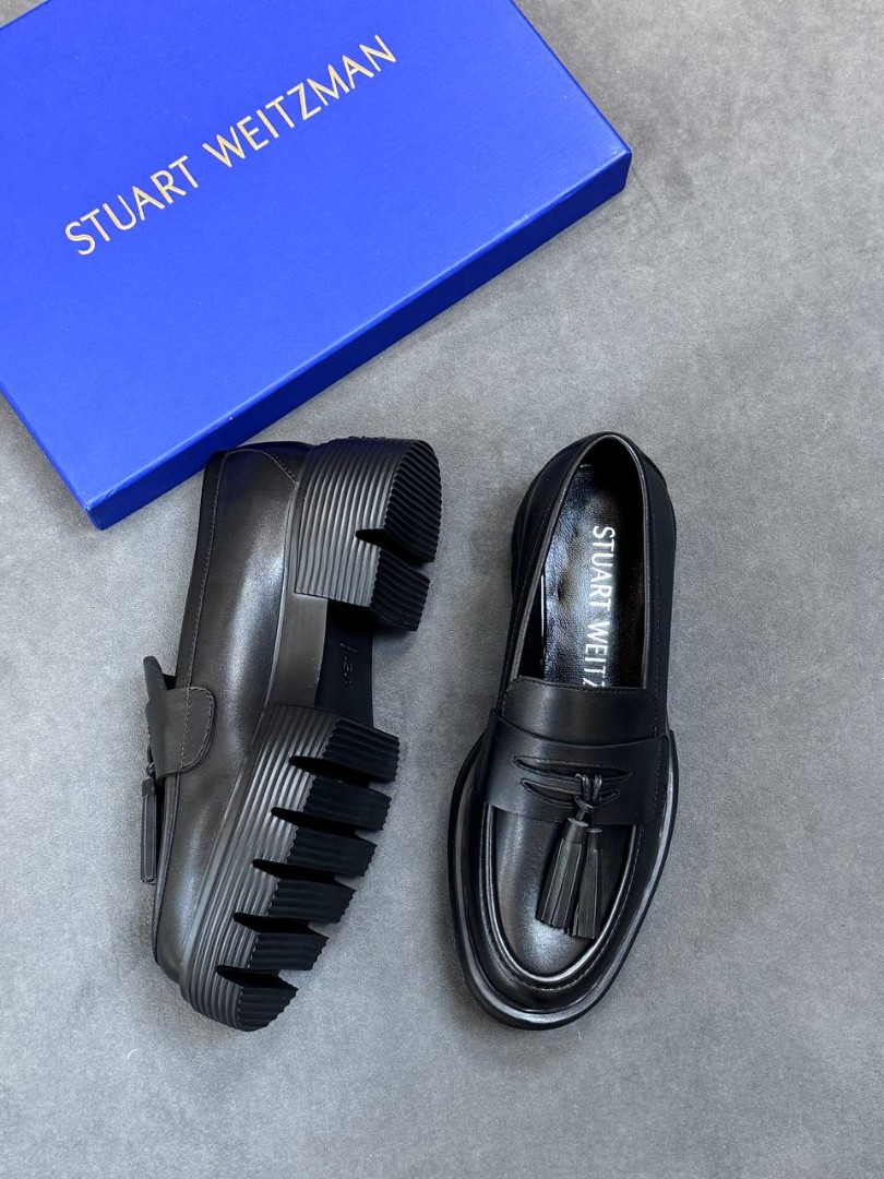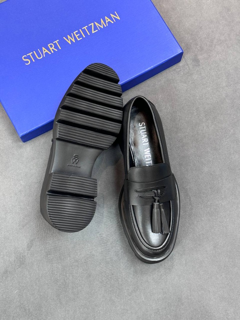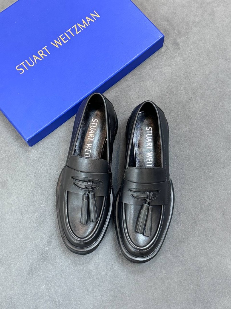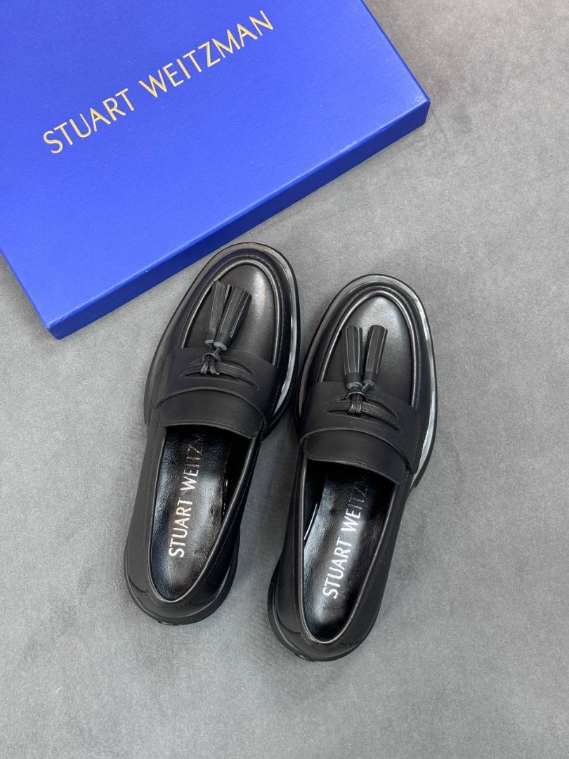 Женские кожаные лоферы Stuart Weitzman черные с кисточками 2025