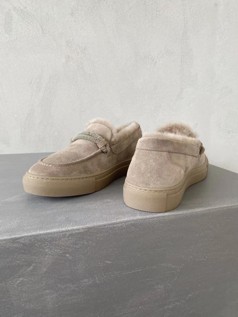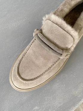 Женские лоферы Brunello Cucinelli на меху бежевые замшевые