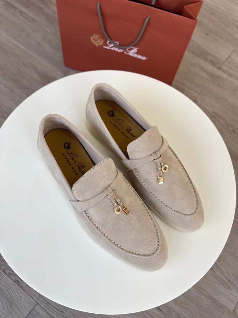 Женские лоферы Loro Piana 2022 замшевые серо-бежевые