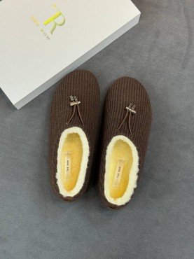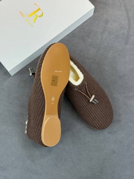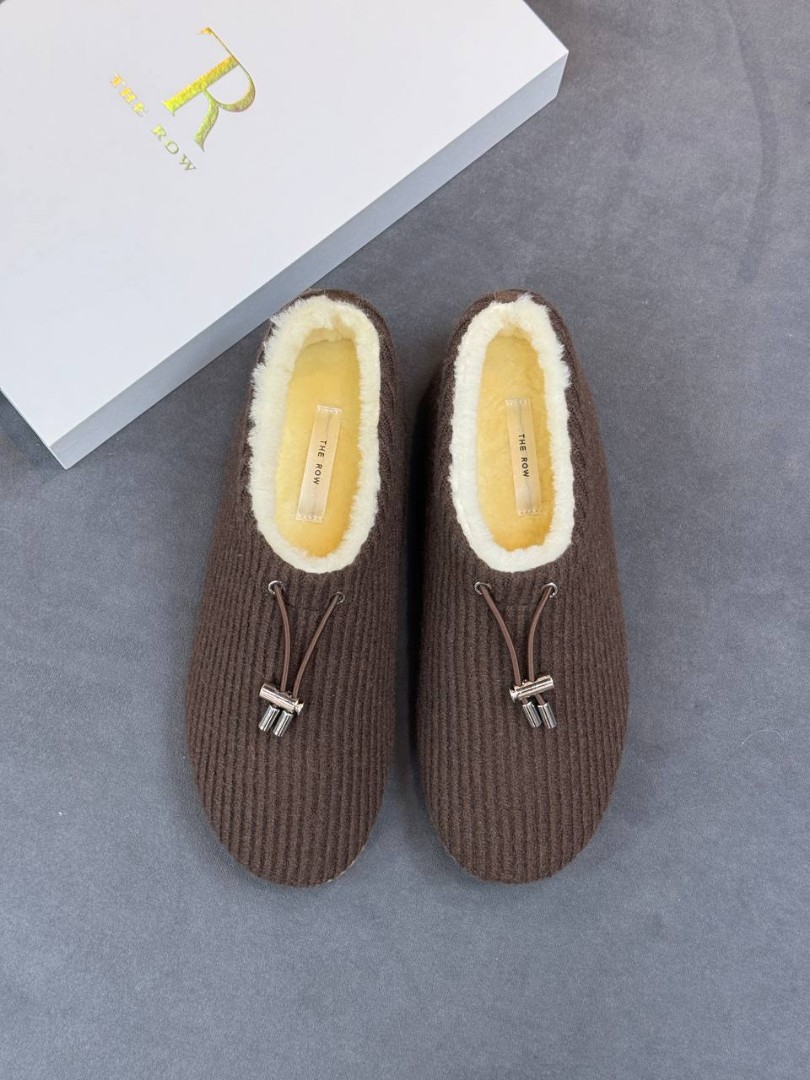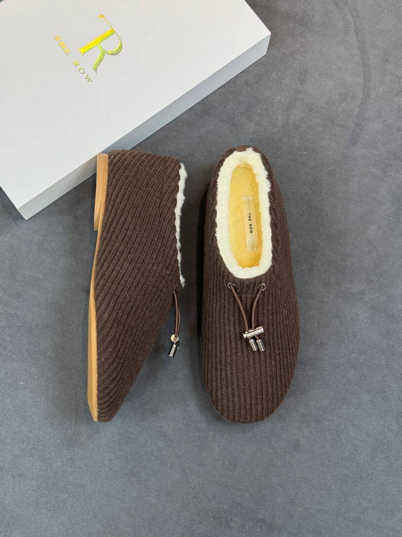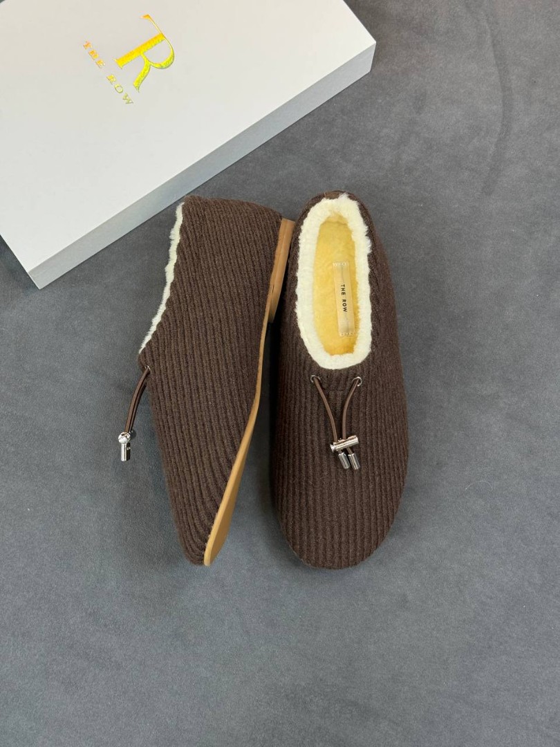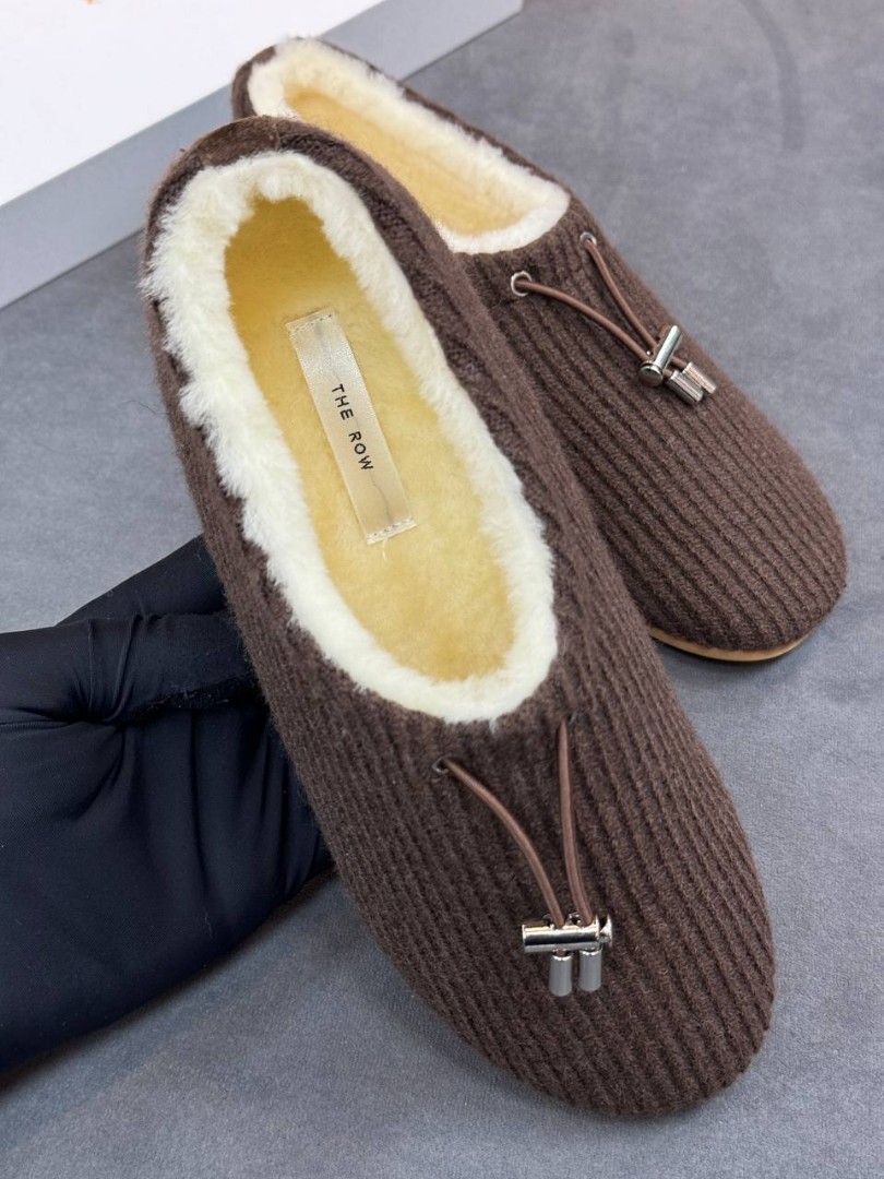 Женские текстильные лоферы The Row коричневые с мехом 2026
