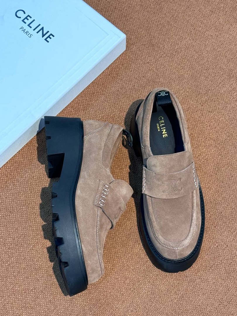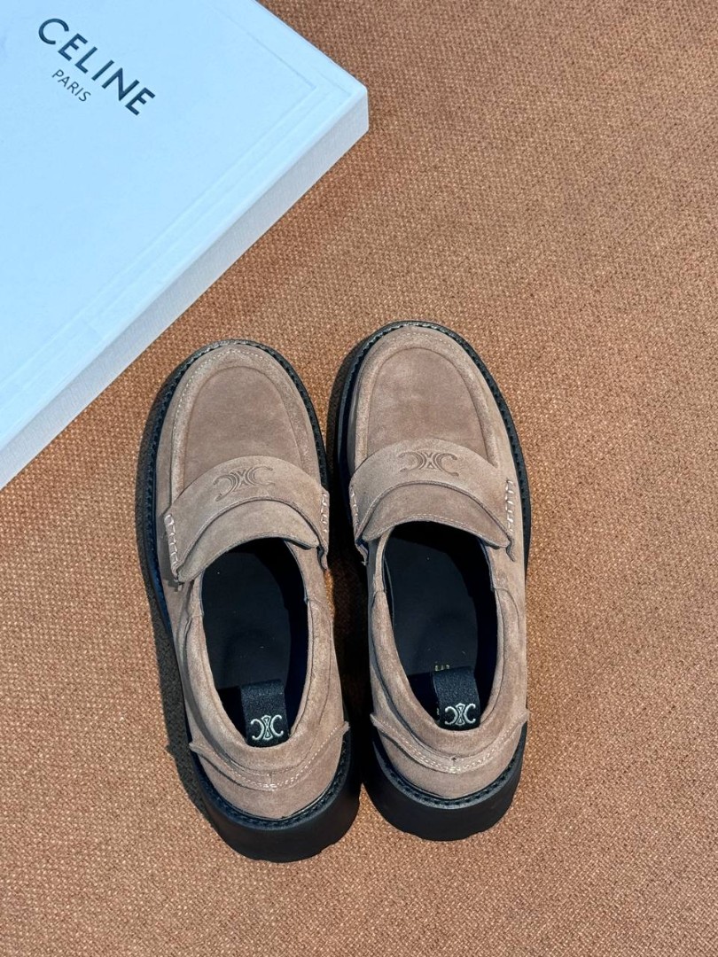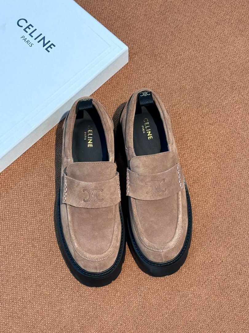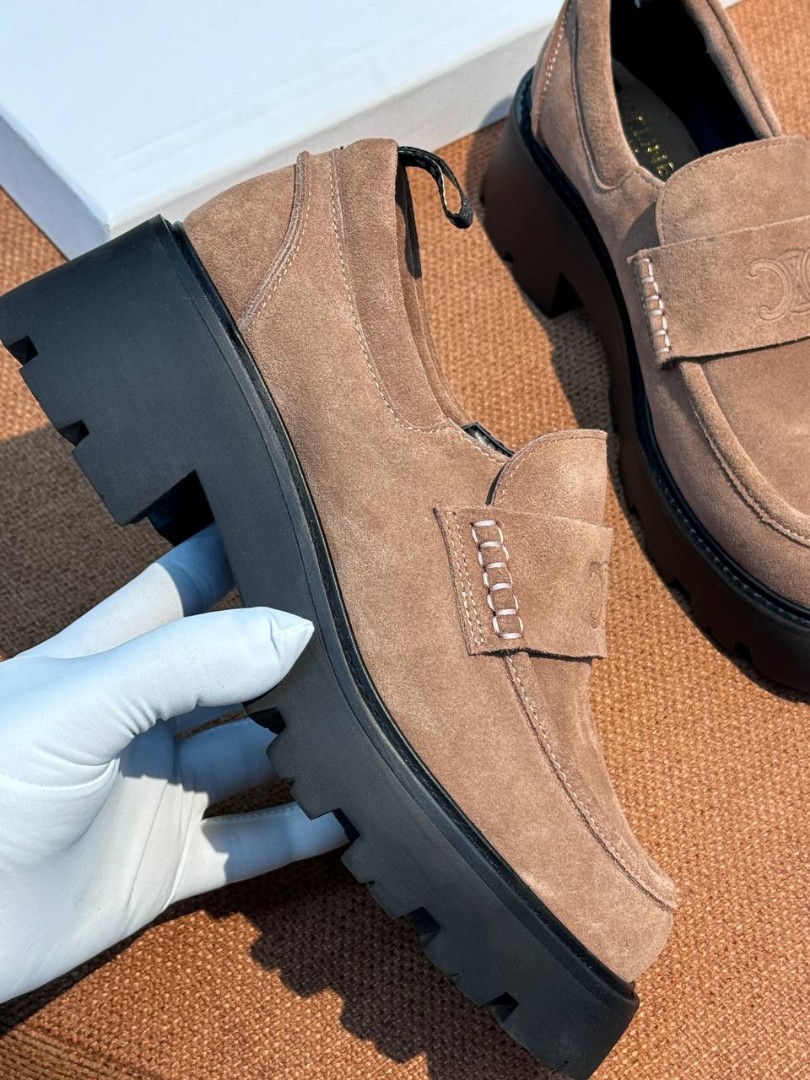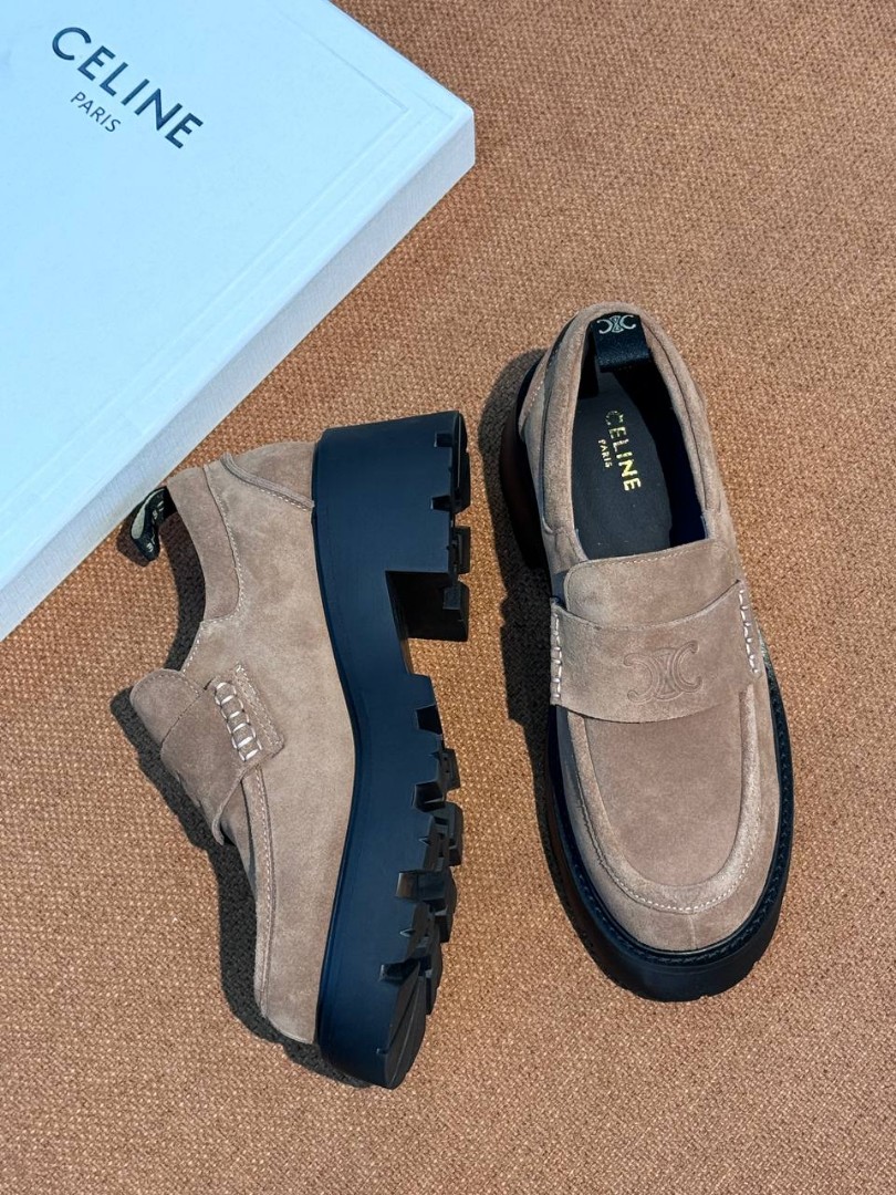 Женские замшевые лоферы Celine бежевые на платформе 5 см 2025