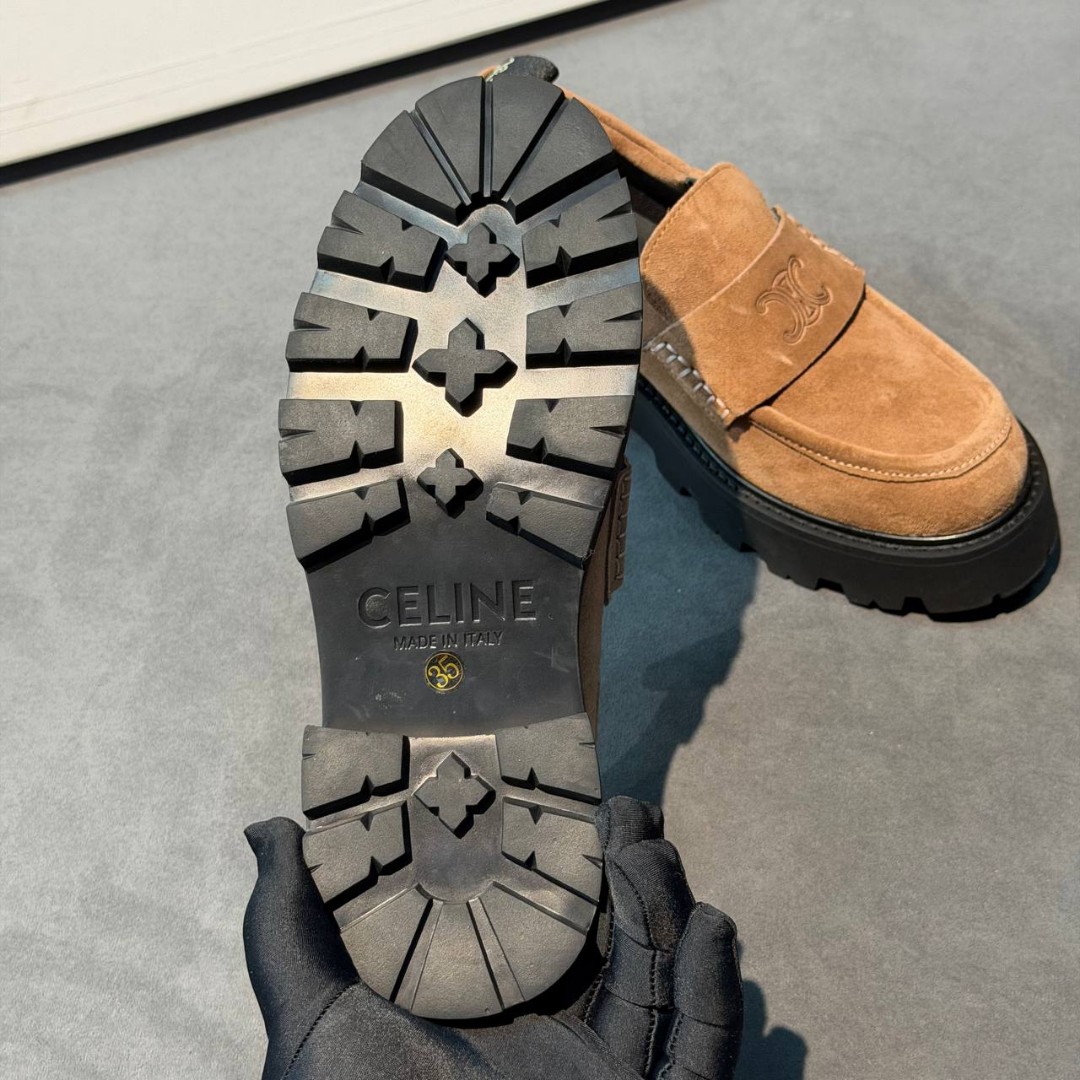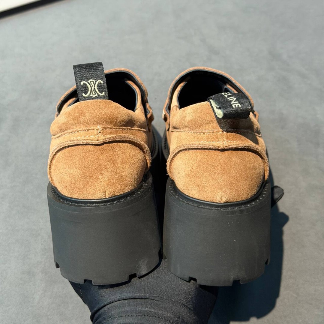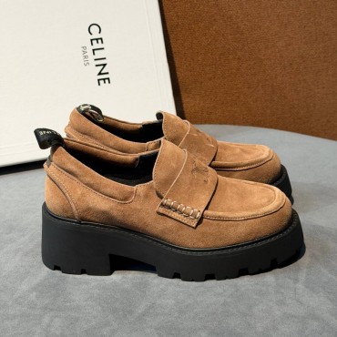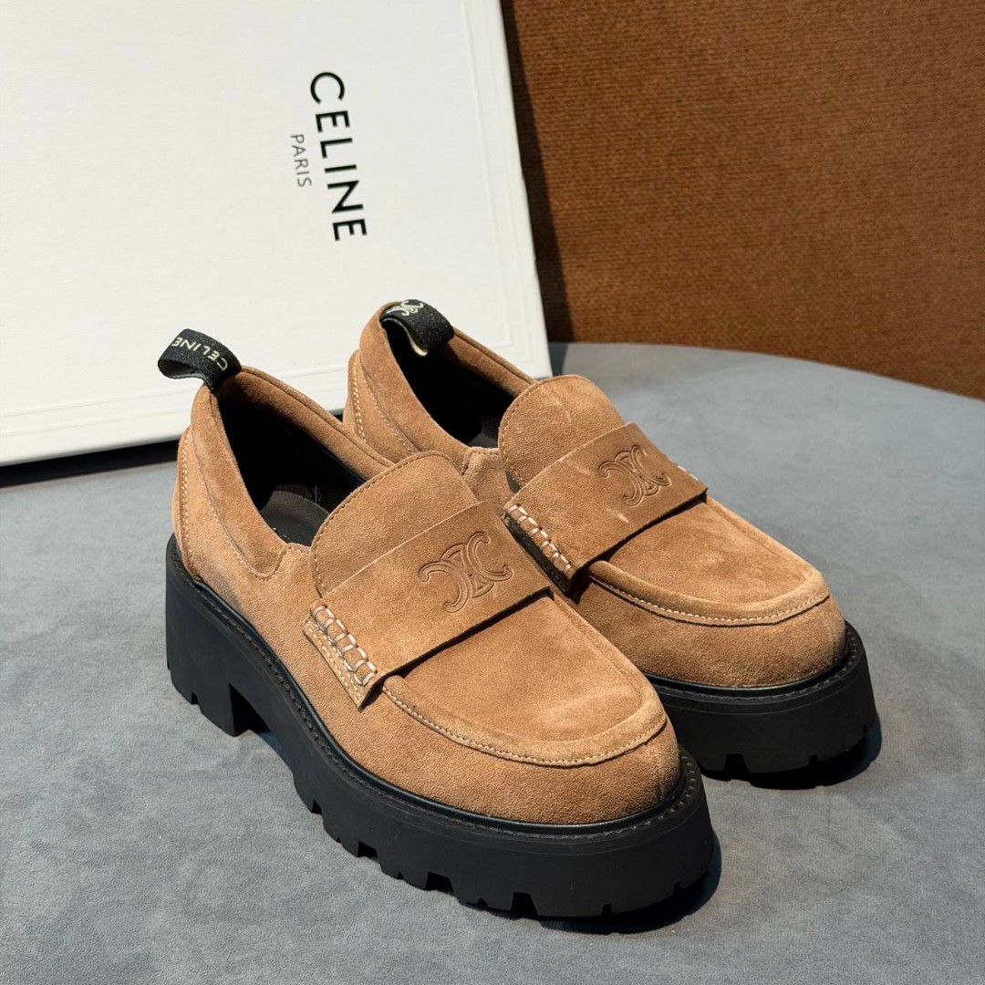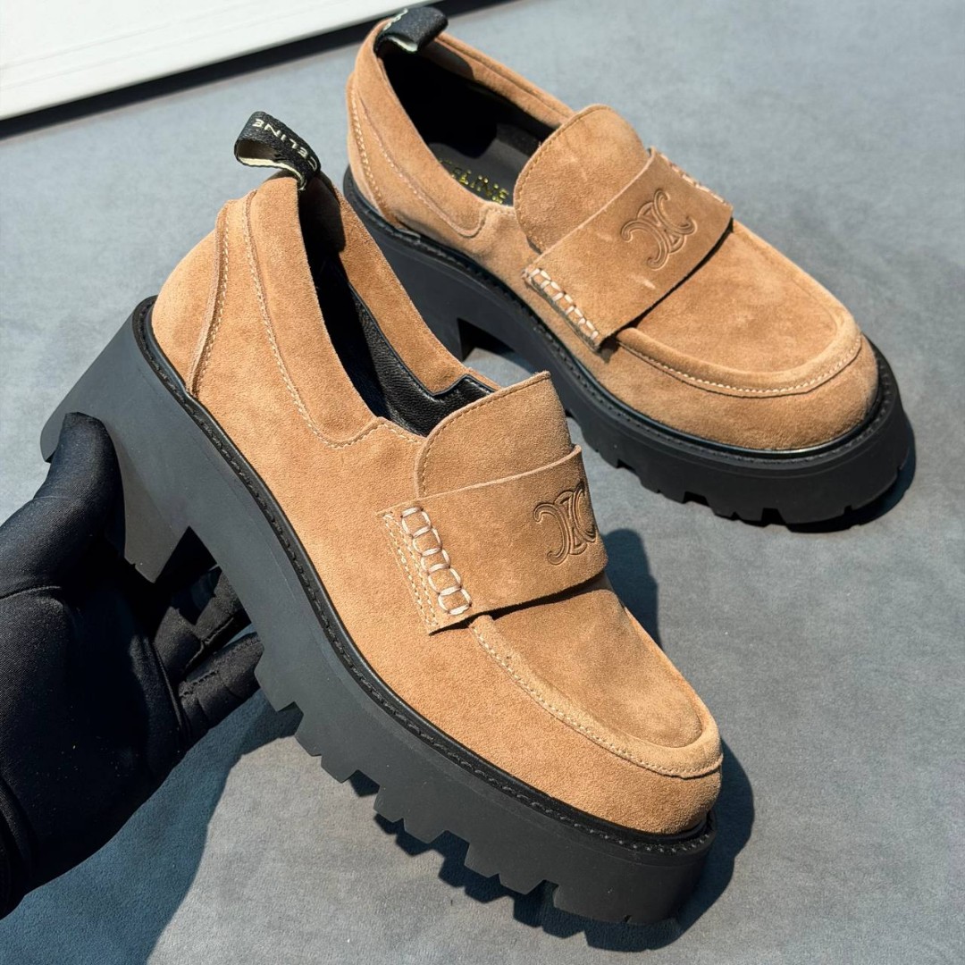 Женские замшевые лоферы Celine на платформе коричневые 2026