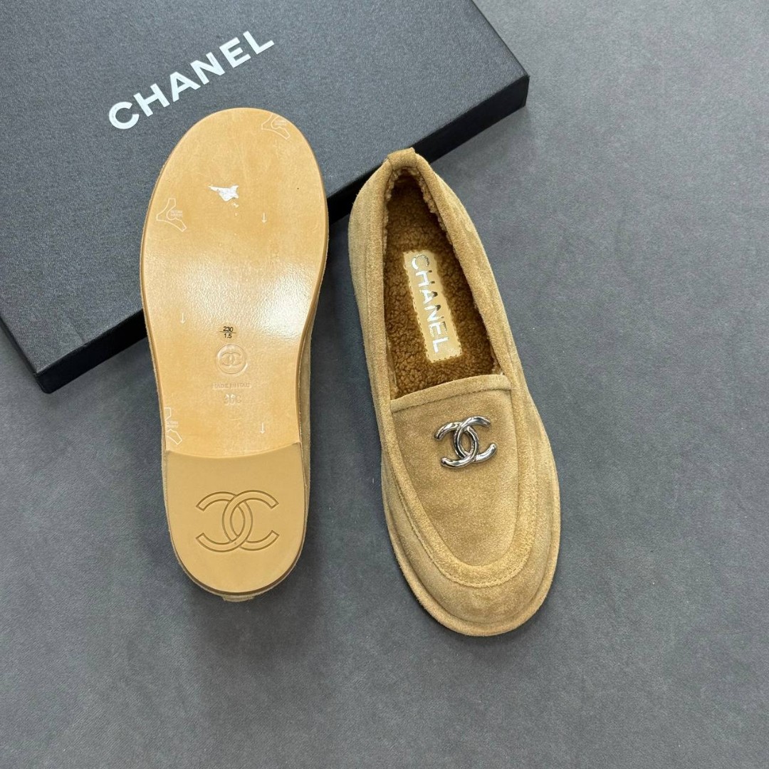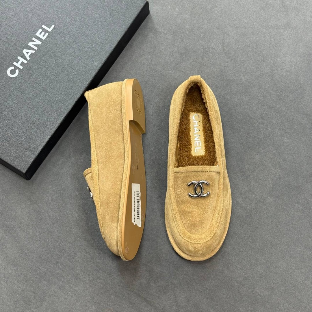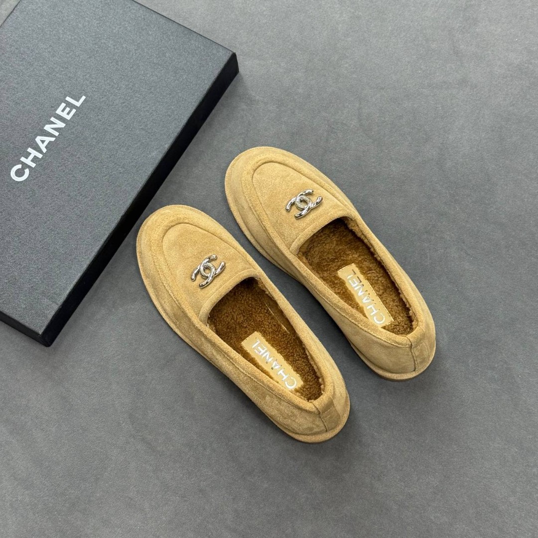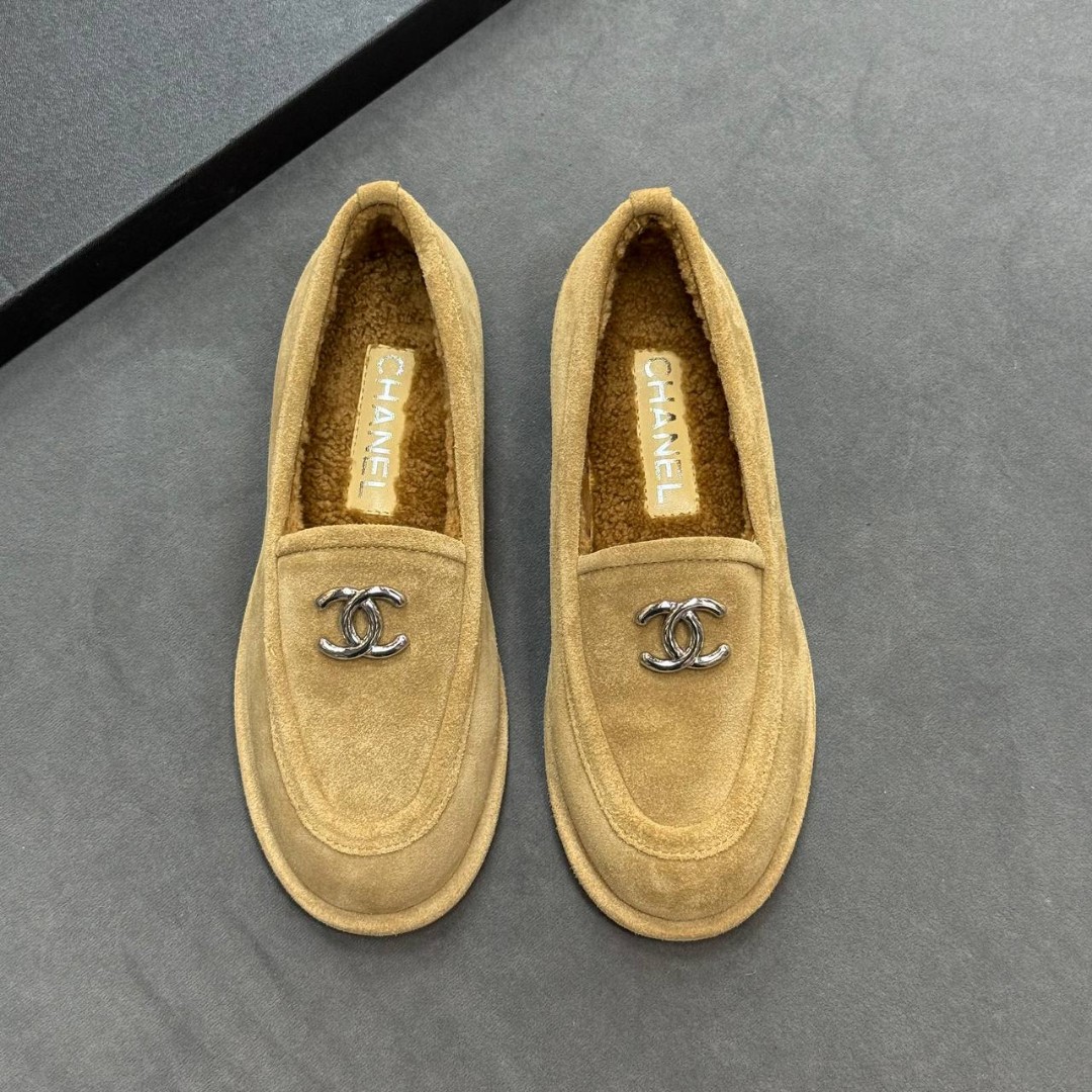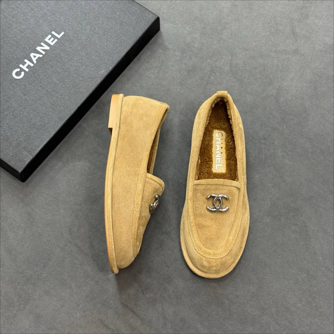 Женские замшевые лоферы Chanel бежевые с мехом 2025