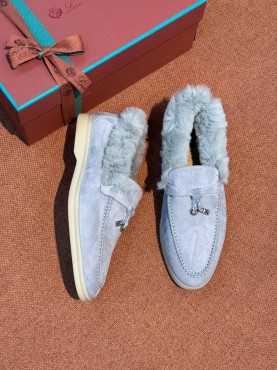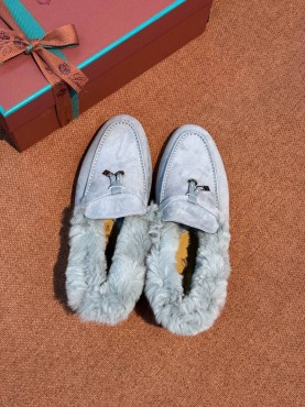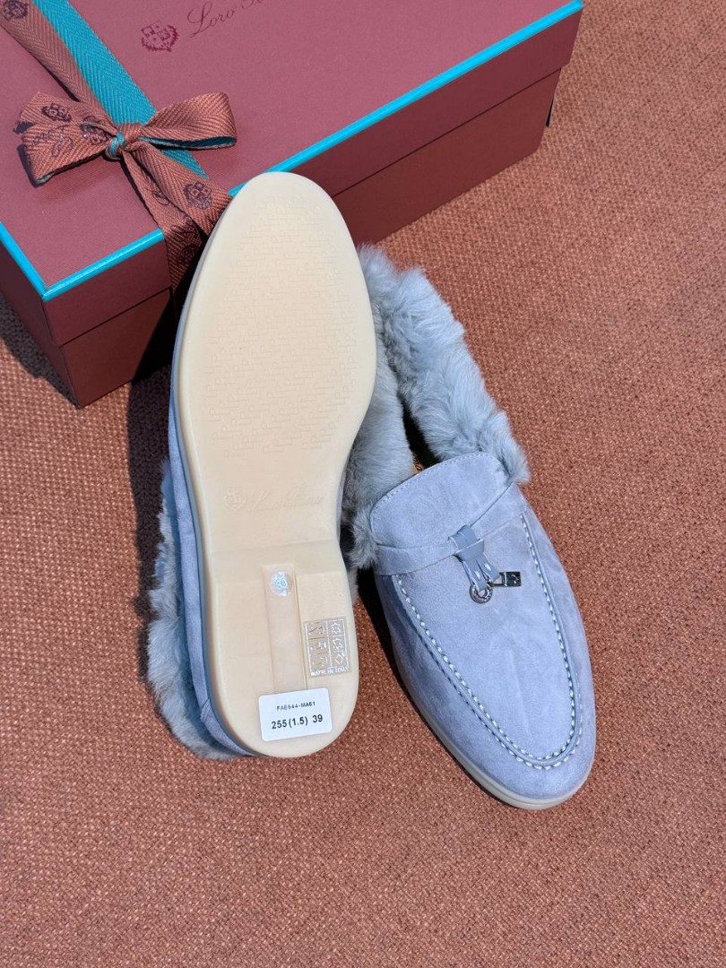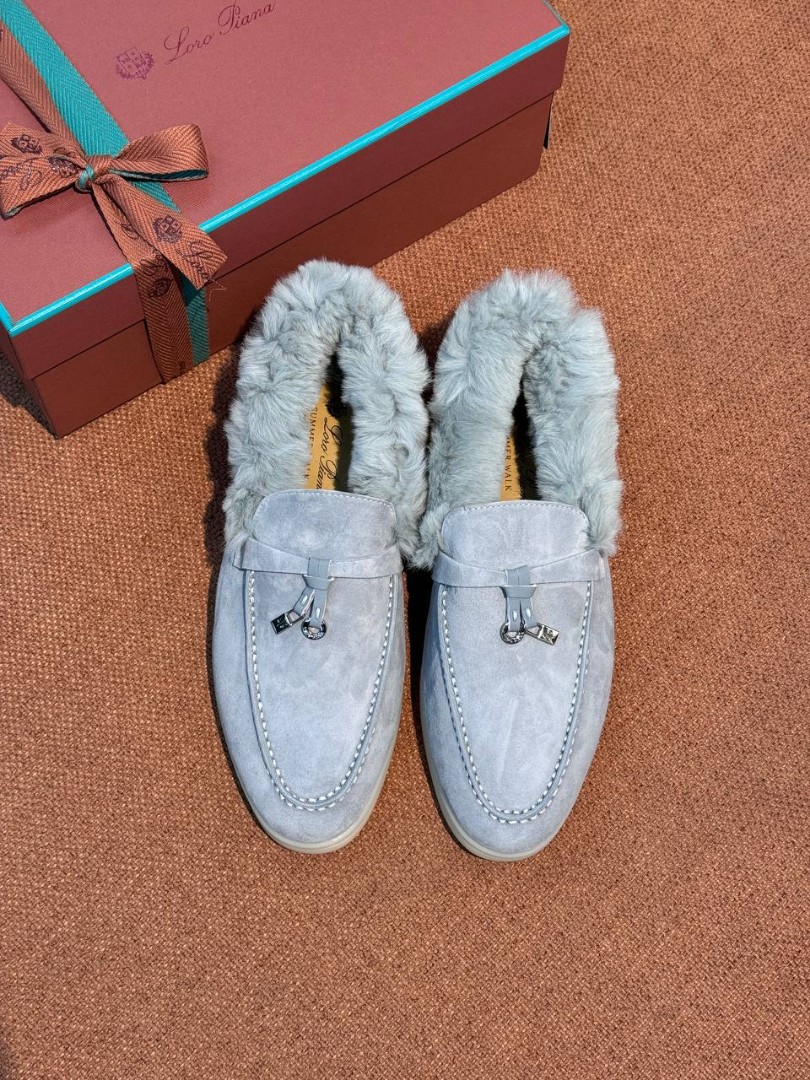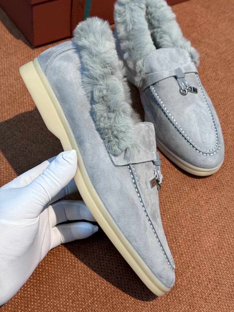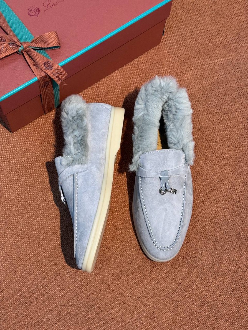 Женские замшевые лоферы Loro Piana на меху голубые 2025