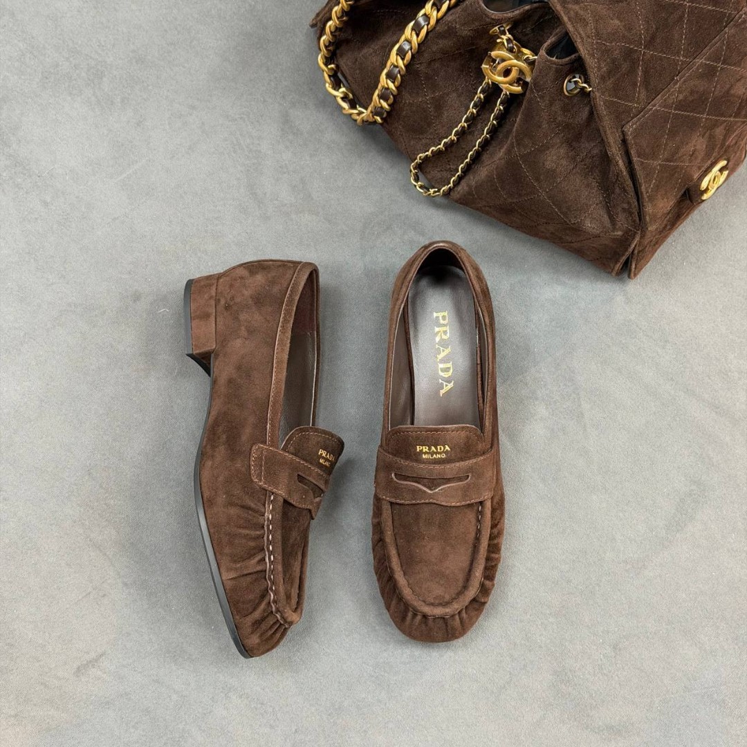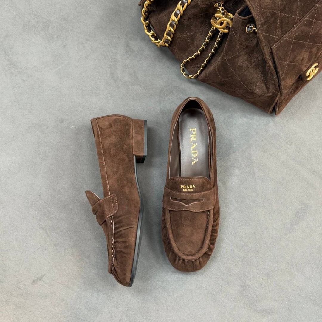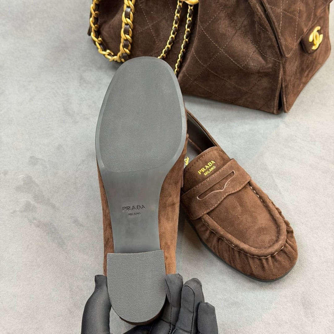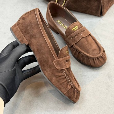 Женские замшевые лоферы Prada коричневые 2026