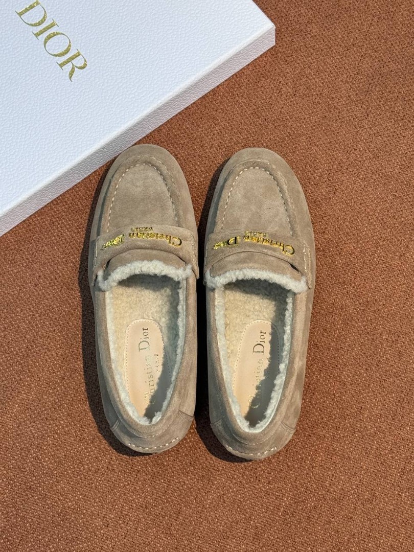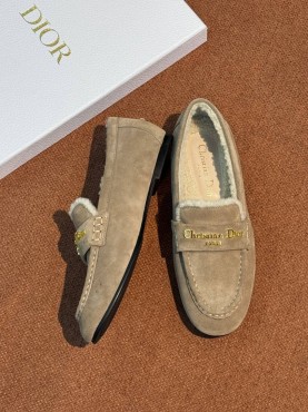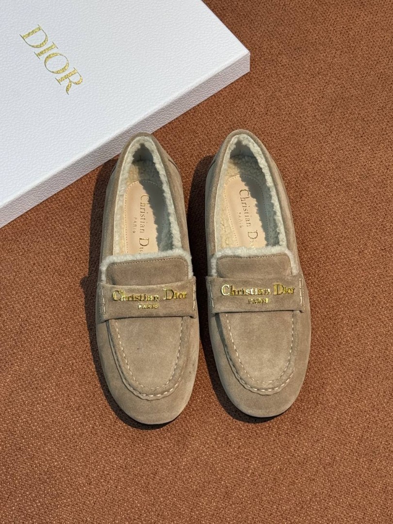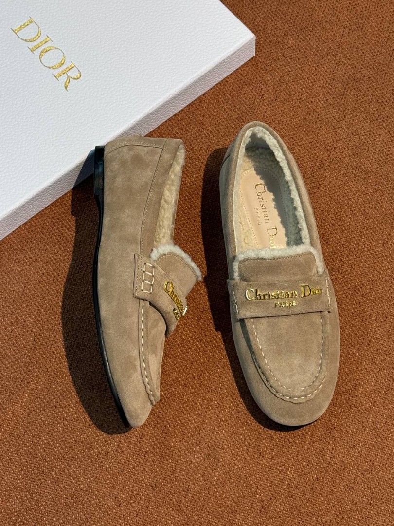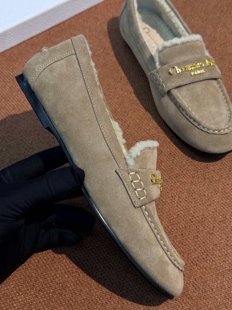 Женские замшевые мокасины Christian Dior Alps бежевые на меху 2025