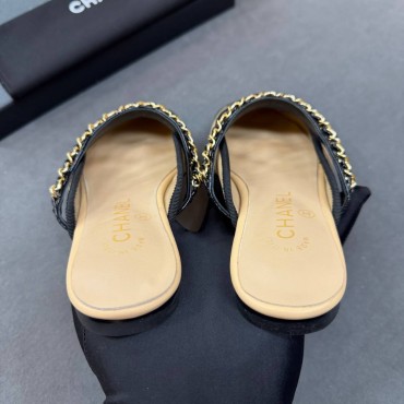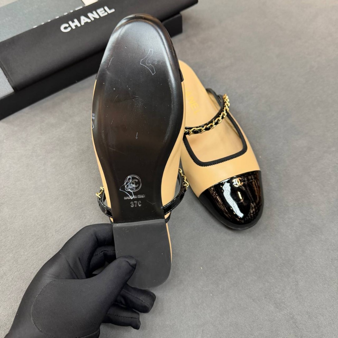 Женские кожаные мюли Chanel бежевые с черным лакированным носом 2026
